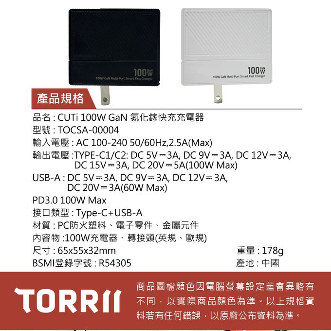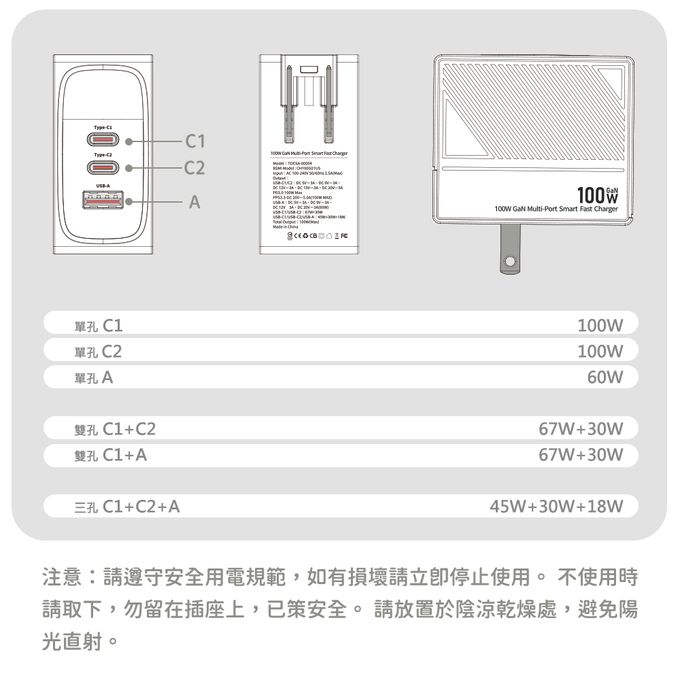 品名:100W 2C1A 氮化鎵GaN快充充電器(贈萬國轉接頭)