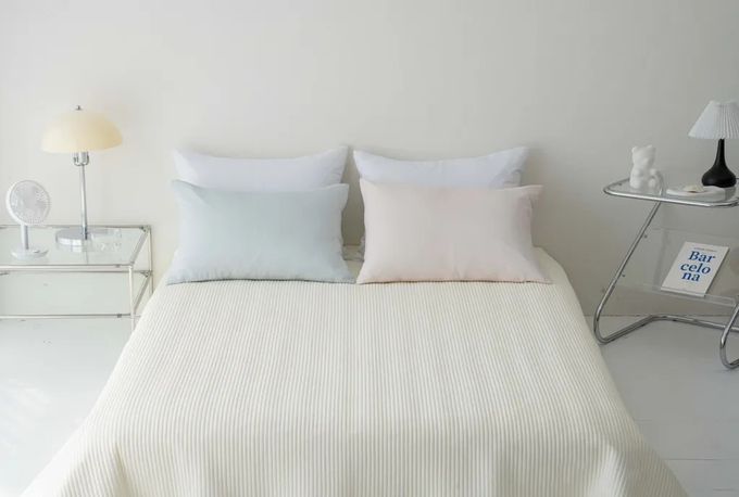 傳統被子填充都偏厚重!夏天只蓋一點點容易一翻身就著涼,冬被厚厚一層蓋上去彷彿中了定身咒 OTZ 總是有一種被束縛著的感覺,睡覺也好有負擔啊!但韓國被子普遍輕盈、觸感手感都很好,不怕不好翻身。