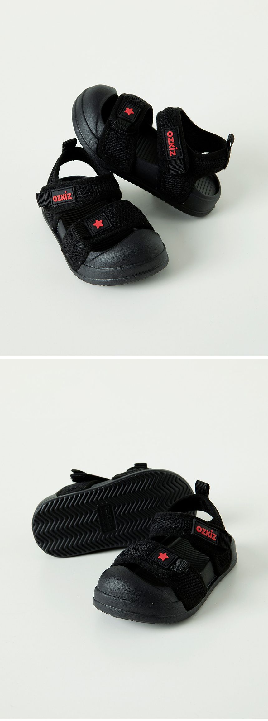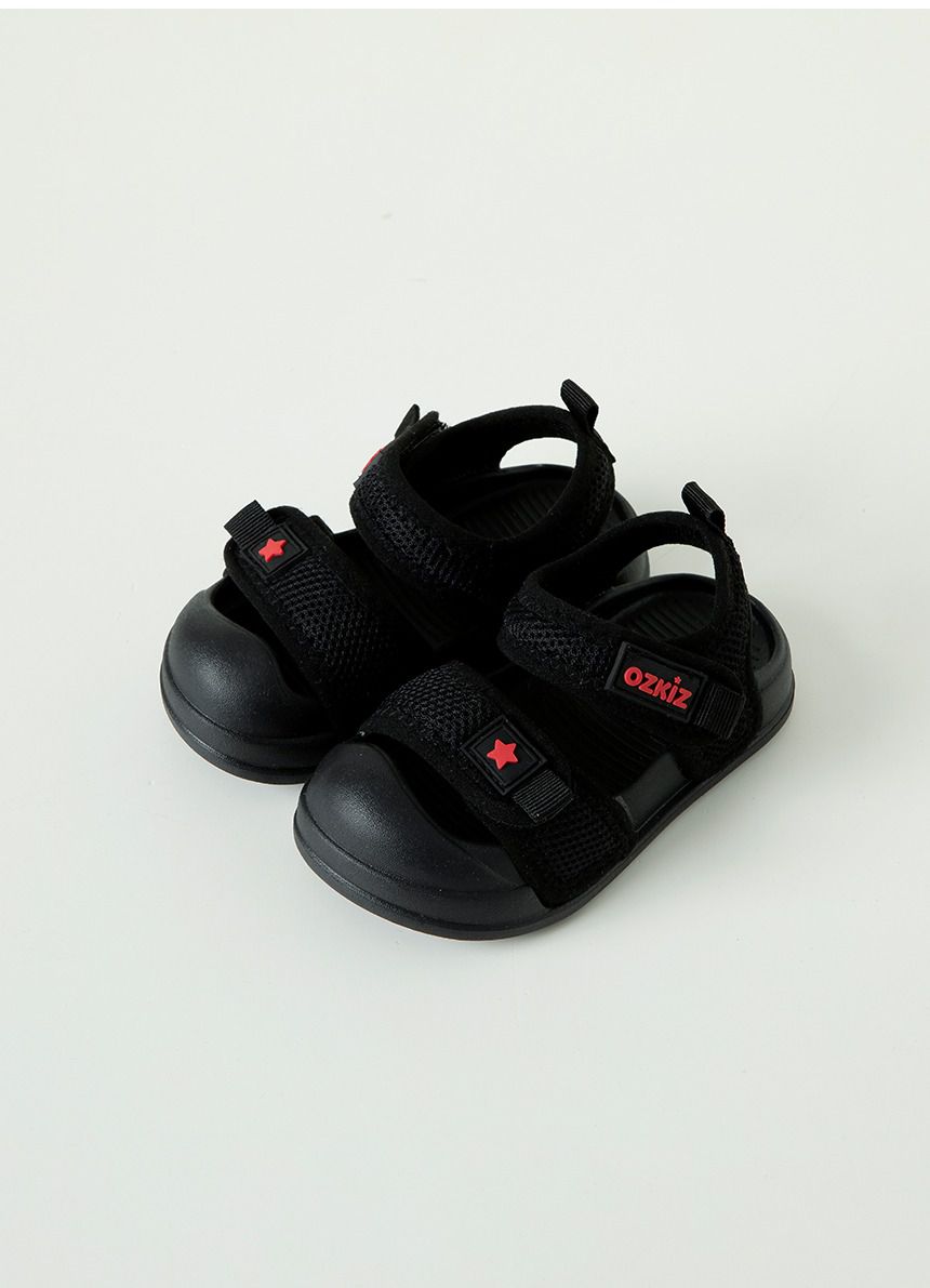 韓國 OZKIZ - 網眼透氣腳趾保護輕量涼鞋-黑