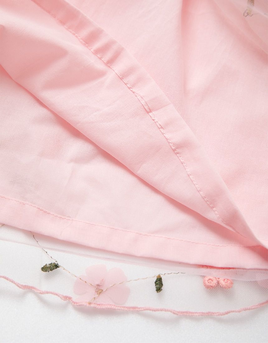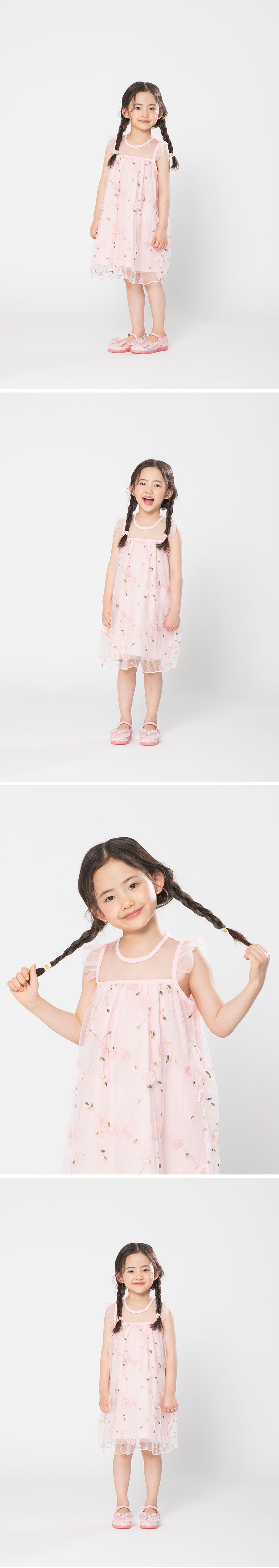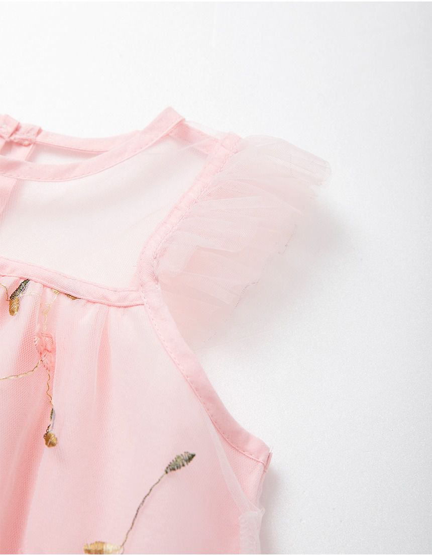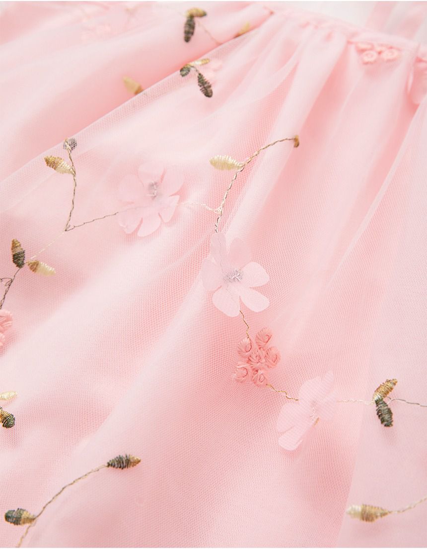 韓國 OZKIZ - 刺繡花仙子微透網紗裝飾無袖洋裝-粉
