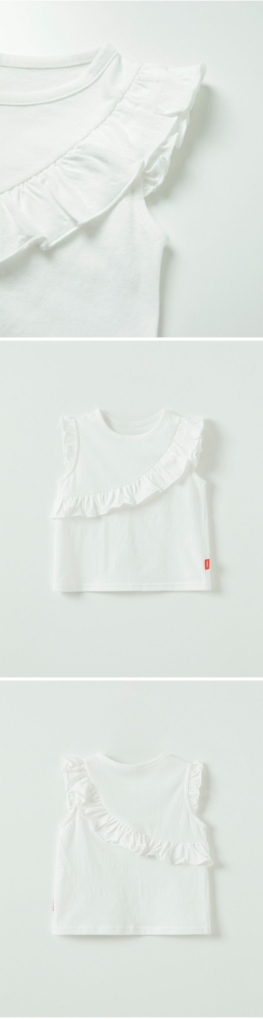 韓國 OZKIZ - 荷葉斜襬裝飾無袖上衣-白