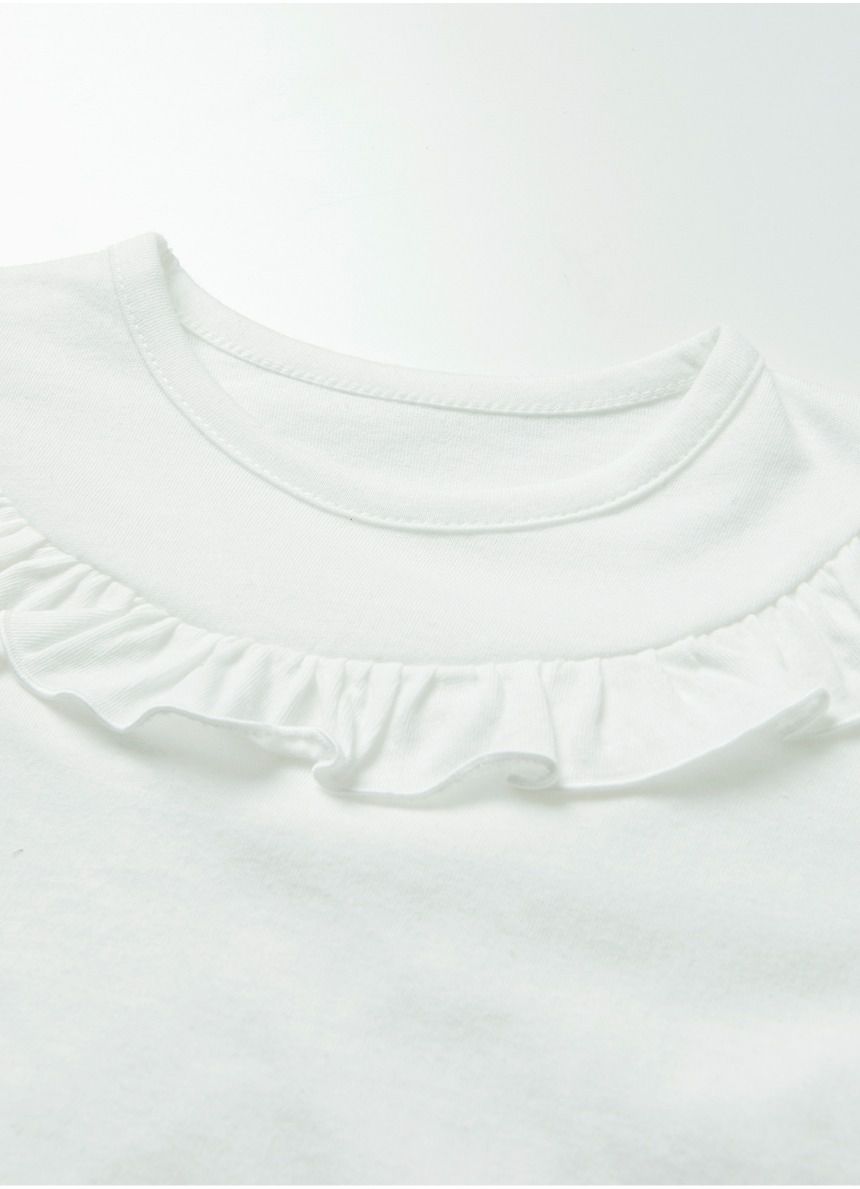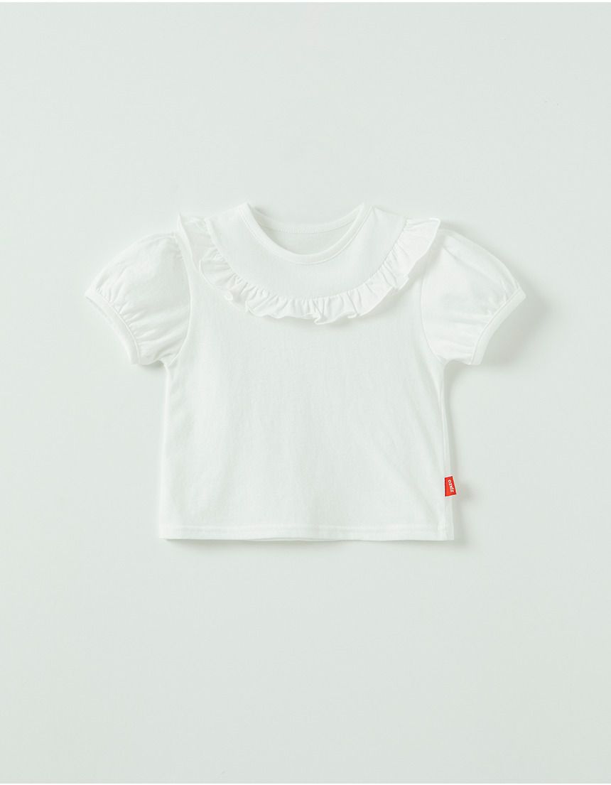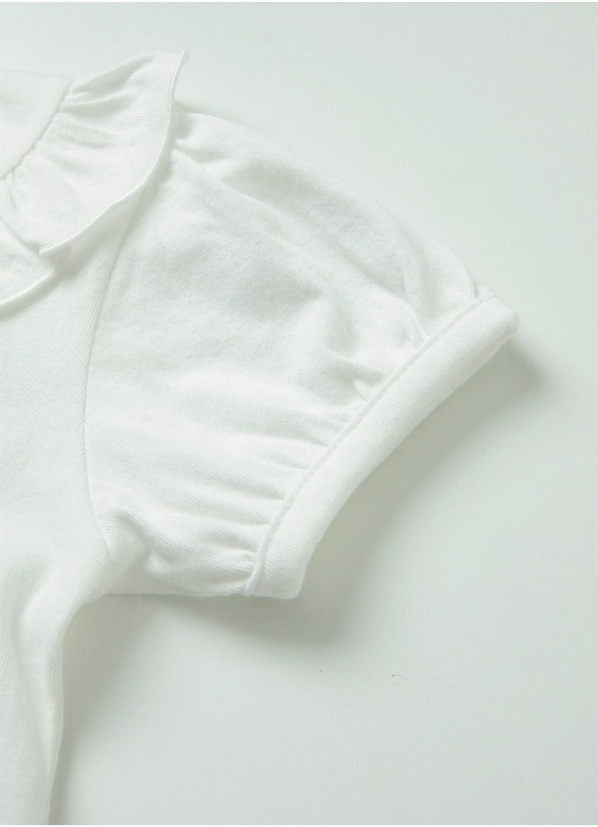 韓國 OZKIZ - 荷葉花邊裝飾泡泡袖上衣-白