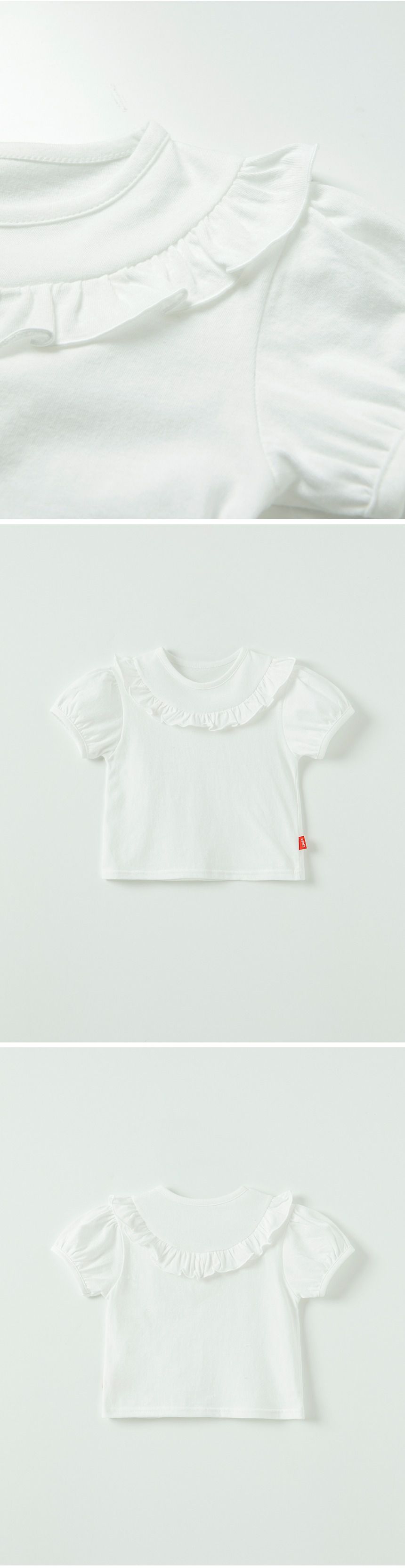 • 品名:荷葉花邊裝飾泡泡袖上衣