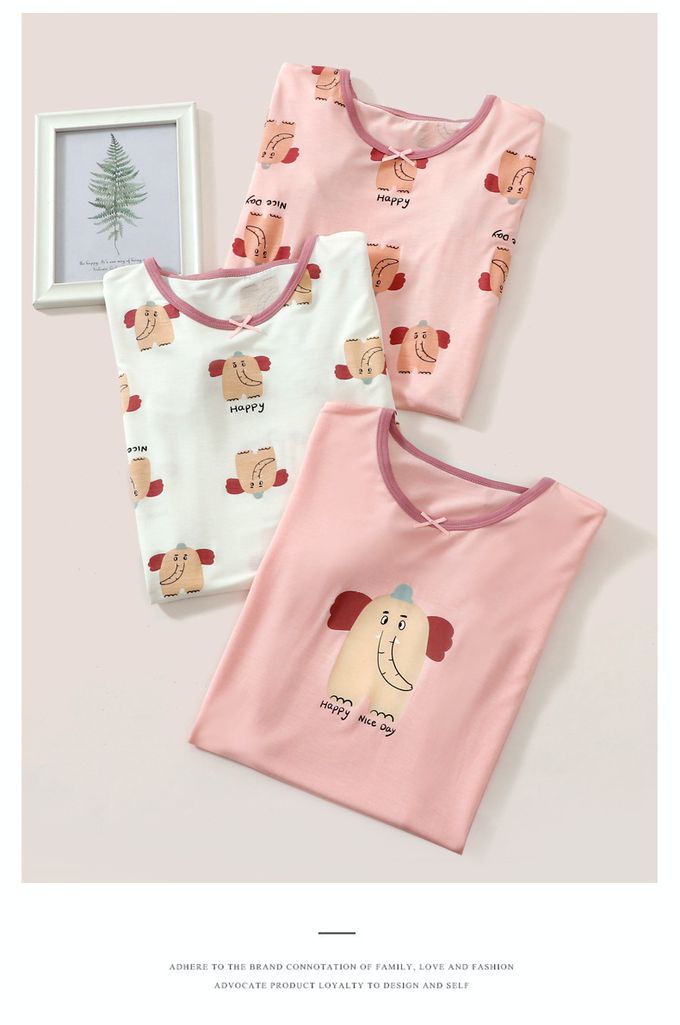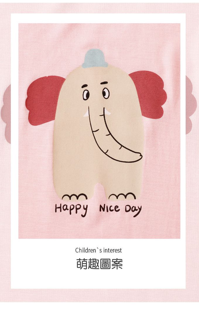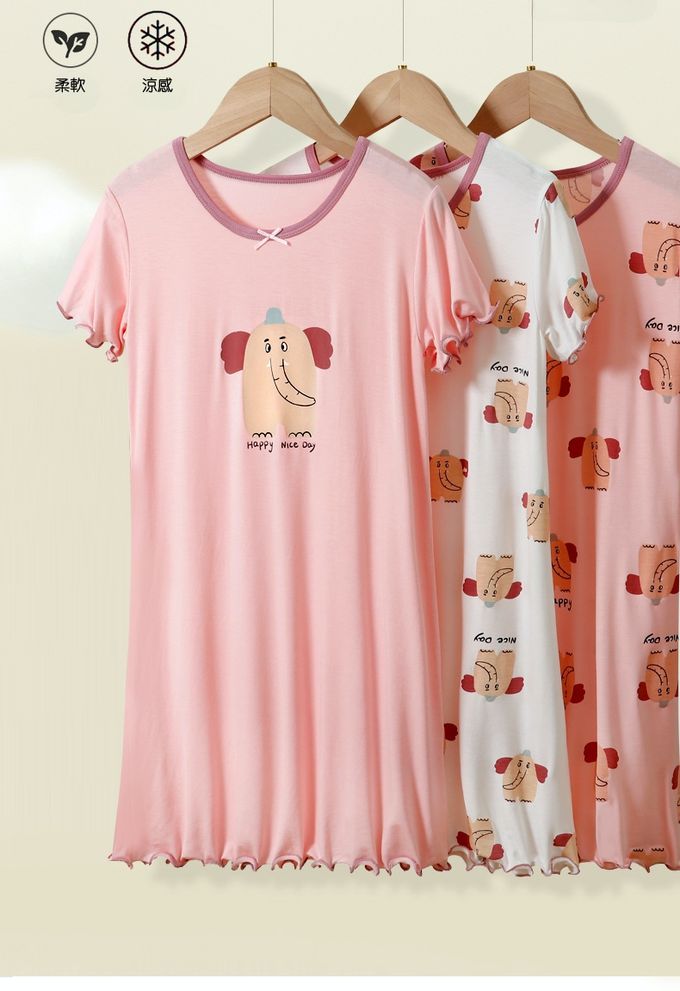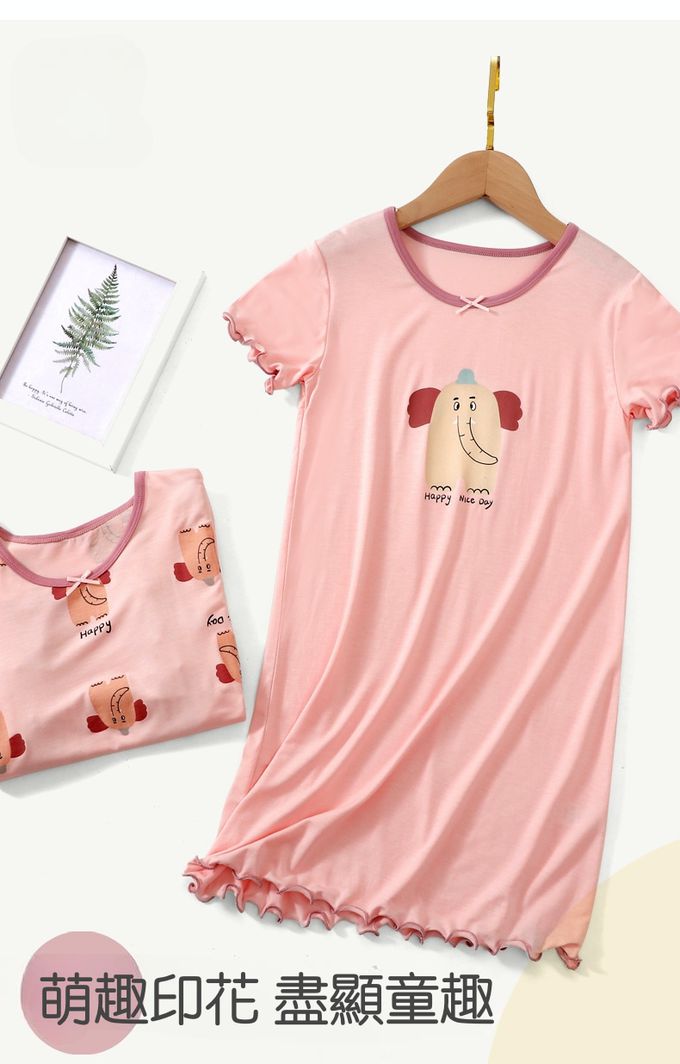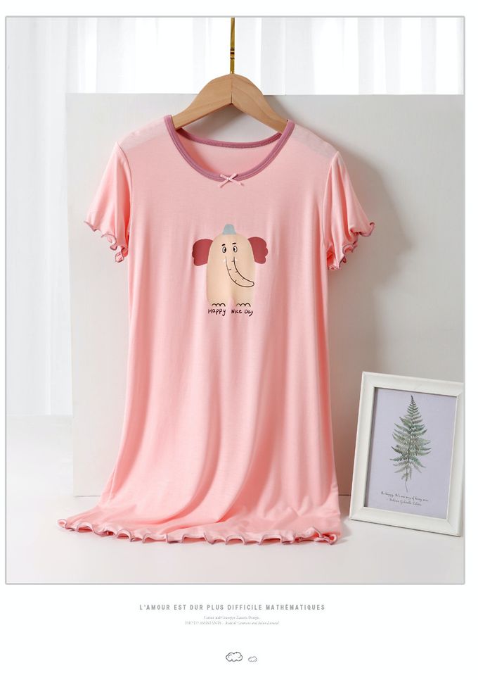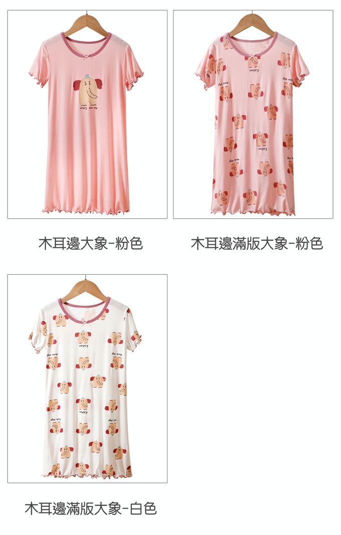 涼感莫代爾短袖連身睡裙/家居服-木耳邊大象-粉色