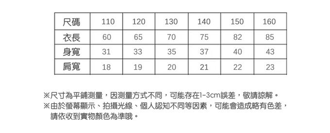 110cm、120cm、130cm、140cm、150cm、160cm
