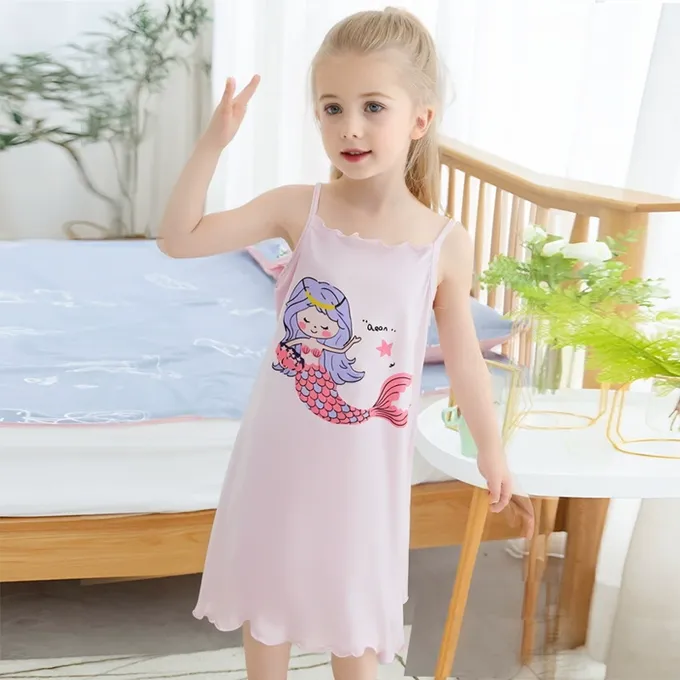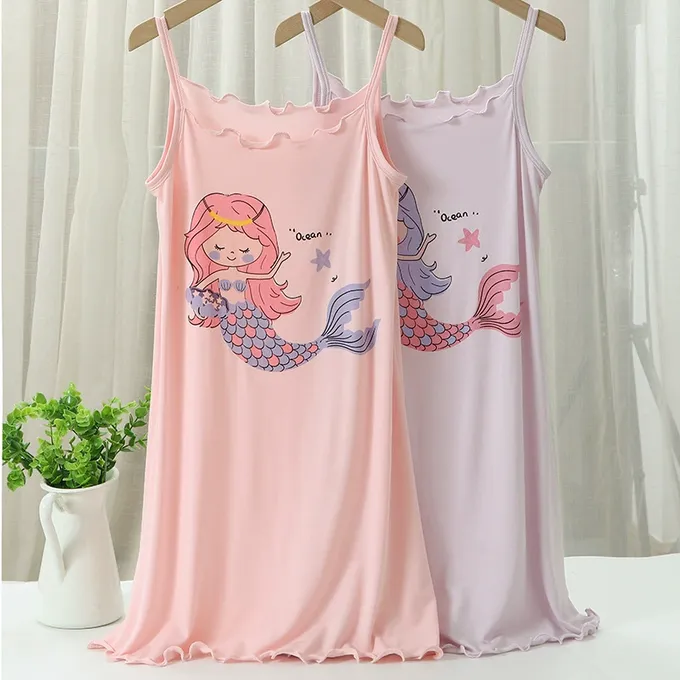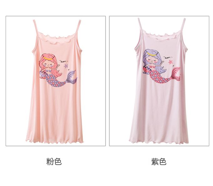 涼感莫代爾細肩帶連身睡裙/家居服-美人魚-紫色