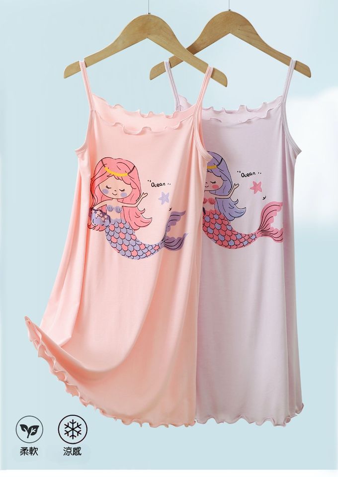 品名:涼感莫代爾細肩帶連身睡裙/家居服