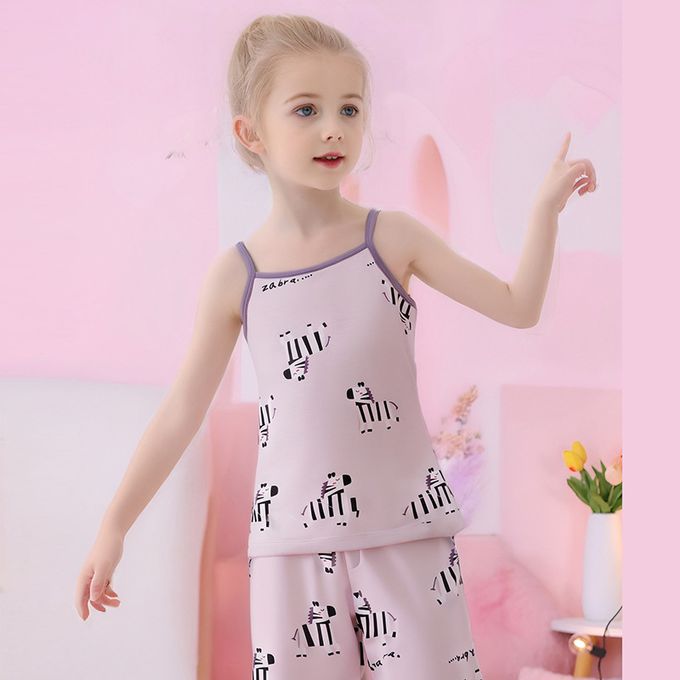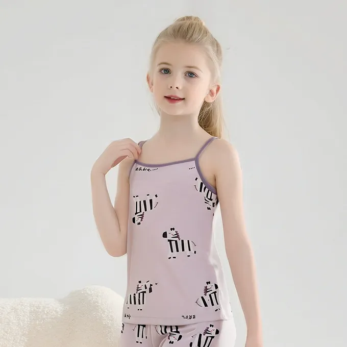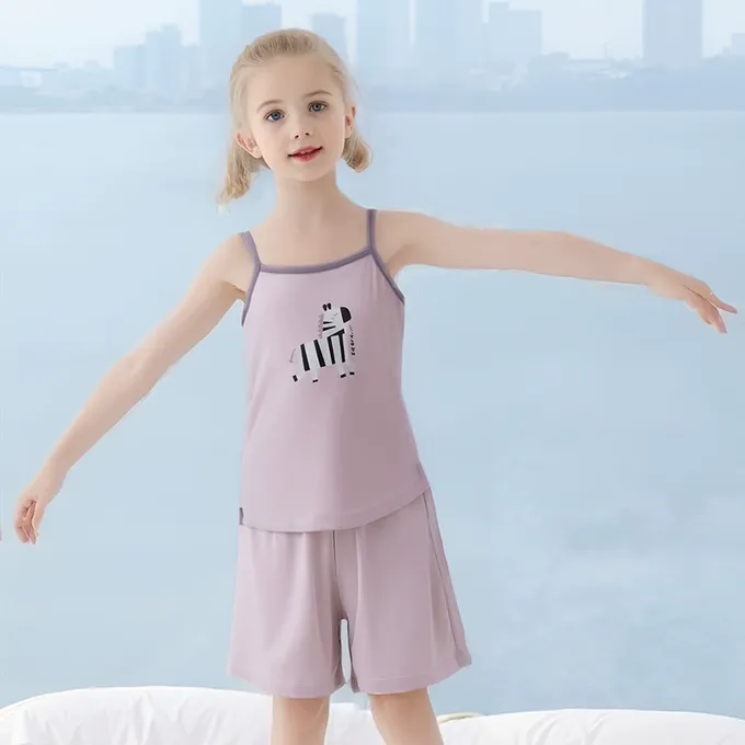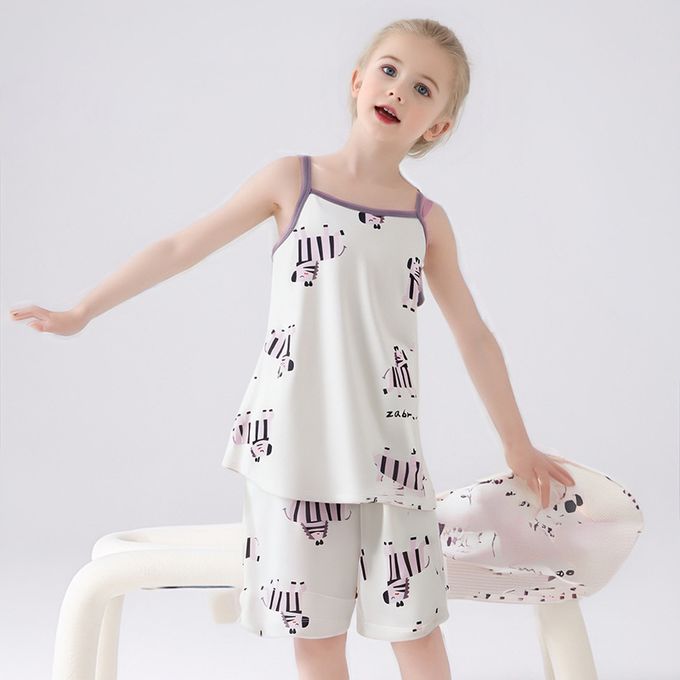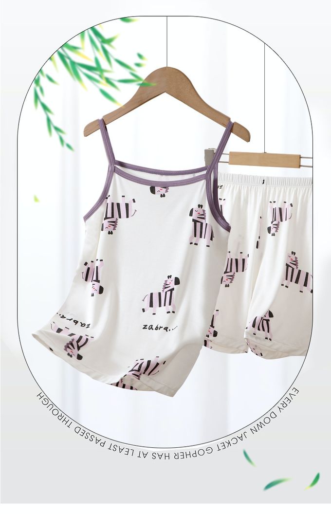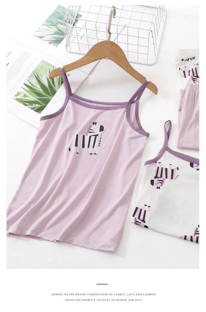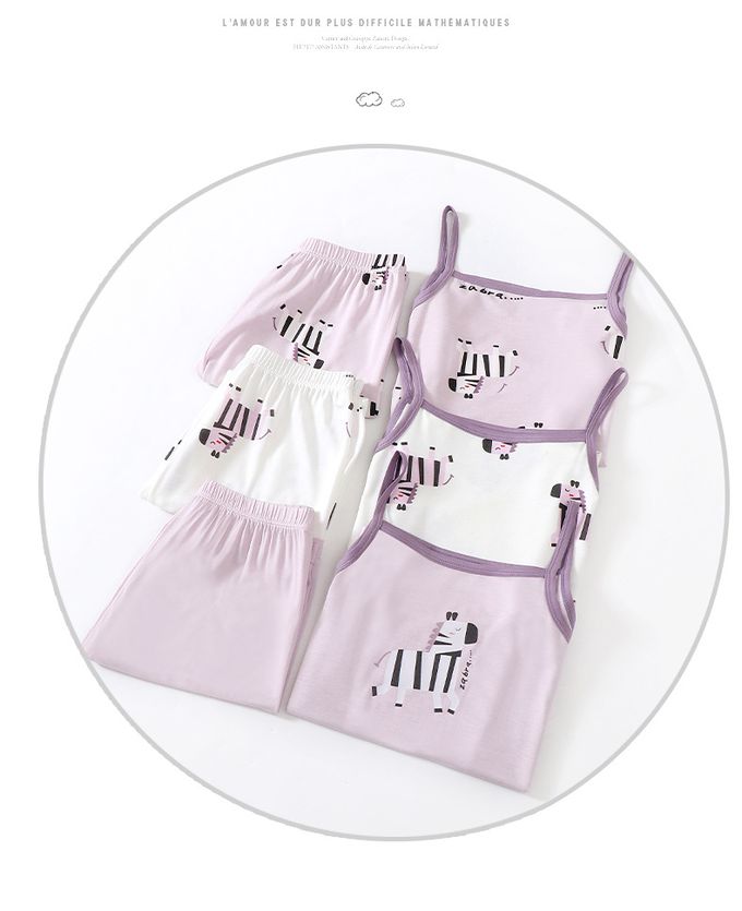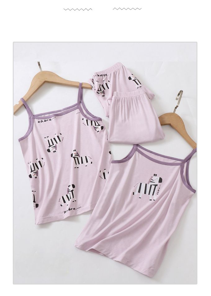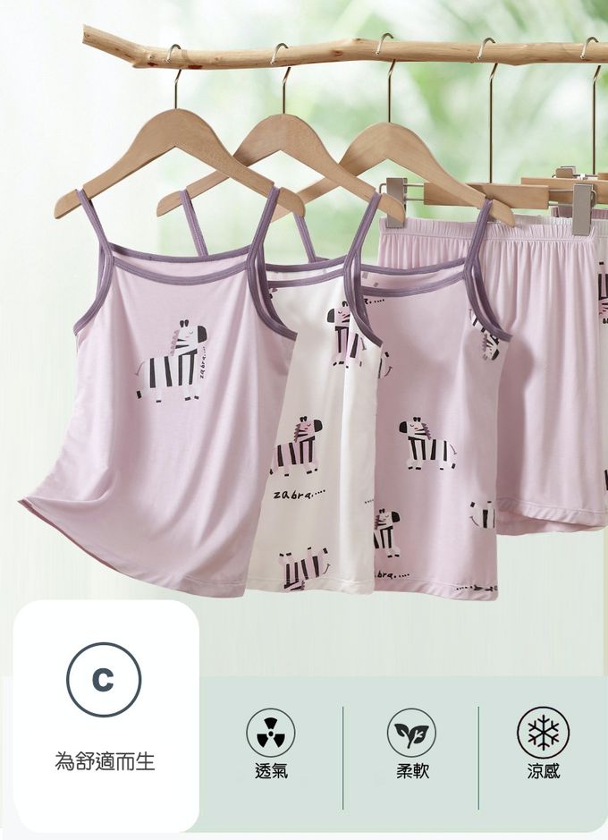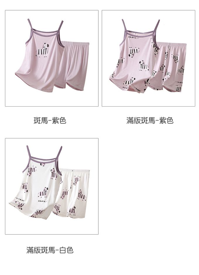 涼感莫代爾細肩帶套裝/家居服-滿版斑馬-白色