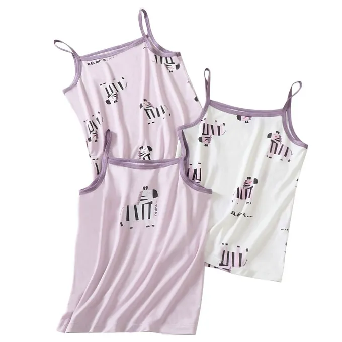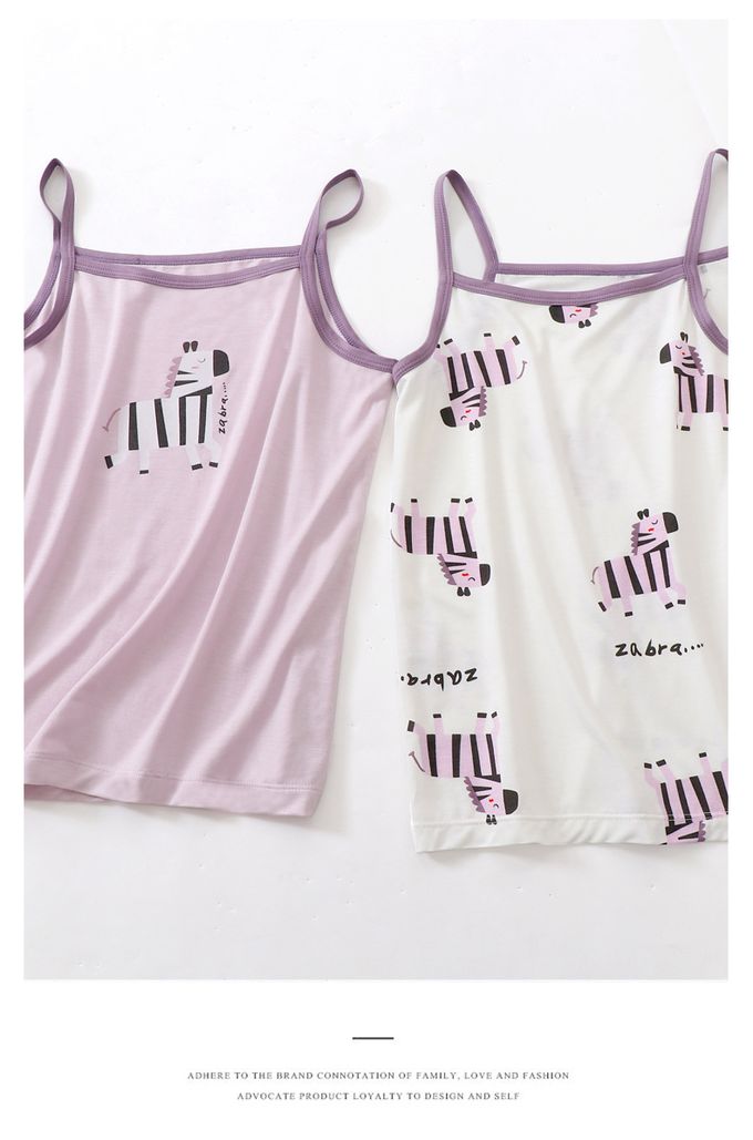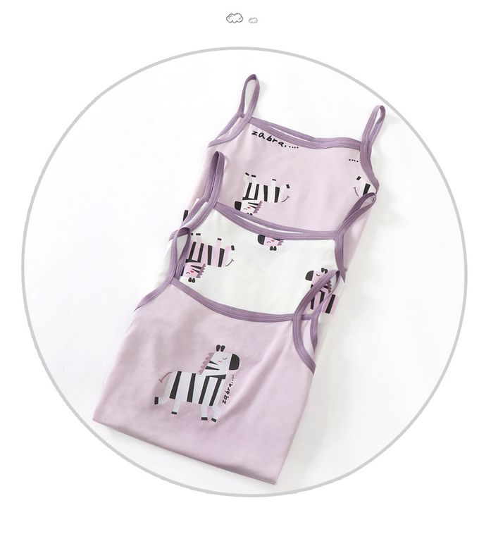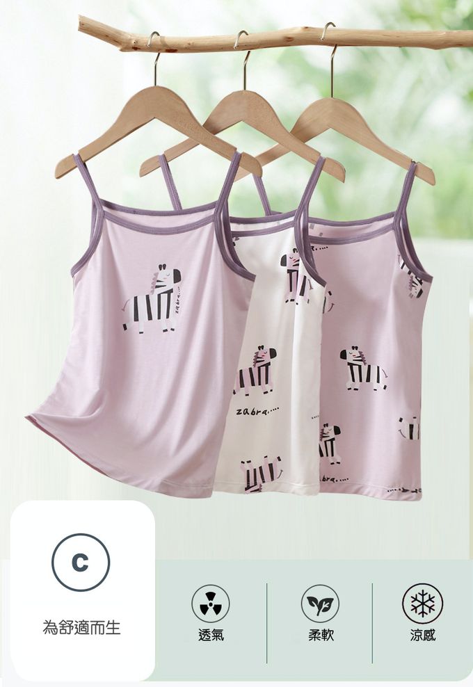 涼感莫代爾細肩帶背心(三件組)-斑馬-紫色