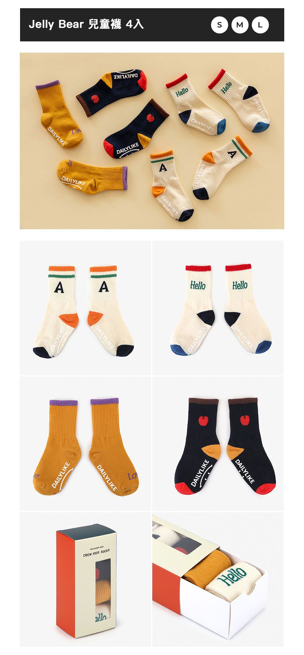 韓國 Daily Like - 兒童襪子/中筒襪4入組-Hello