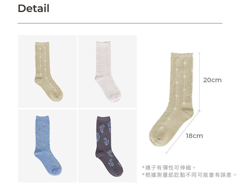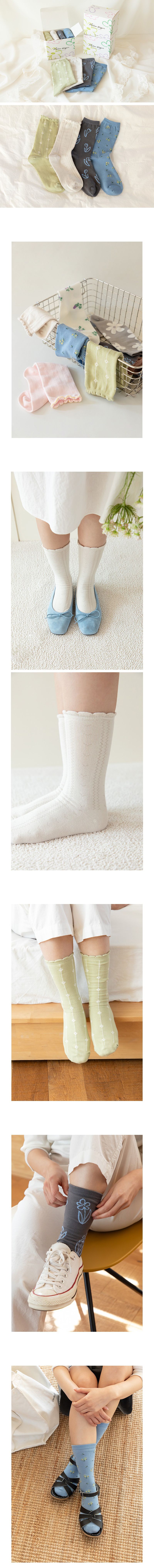 韓國 Daily Like - 女用襪子/中筒襪4入組-浪漫花園 (220~250mm)