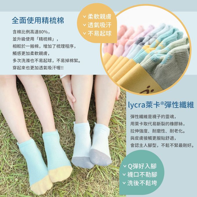 成分:80%精梳棉13%尼龍5%彈性纖維(Protime抗菌纖維+萊卡®彈性纖維) 2%橡膠絲纖維(萊卡®)