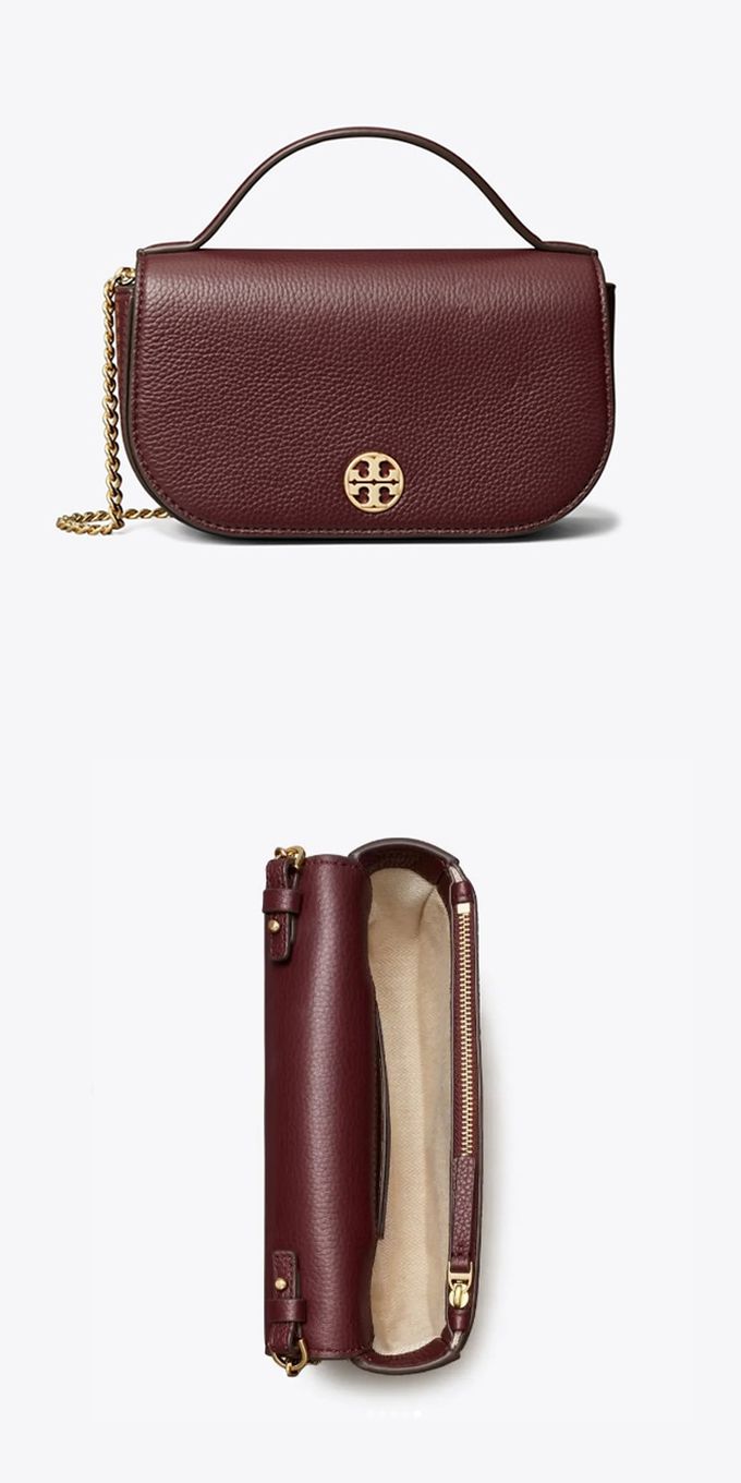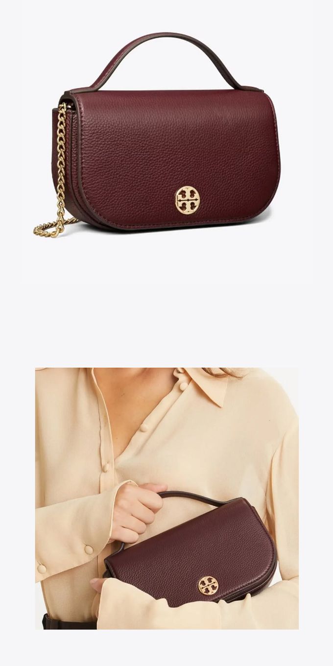 荔枝皮革翻蓋手提/斜背包 (酒紅)