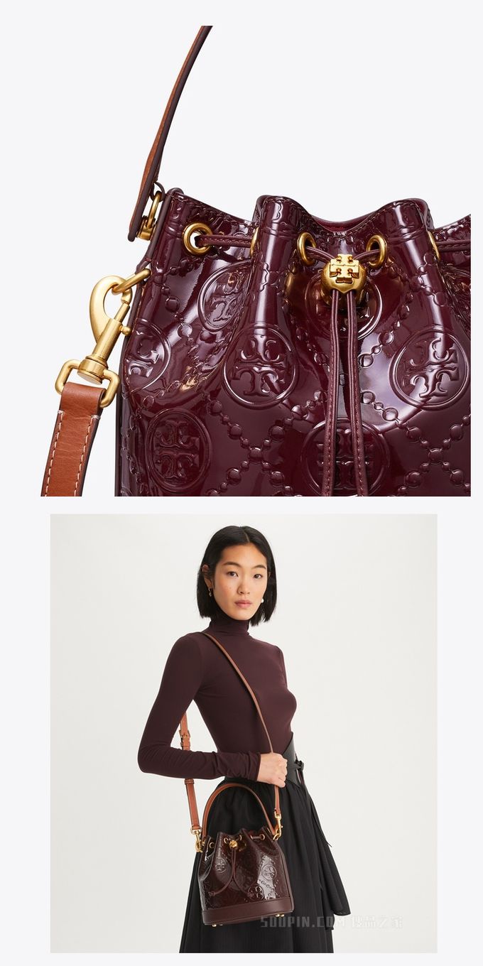 品名:漆皮浮雕LOGO素色束口水桶包/兩用包