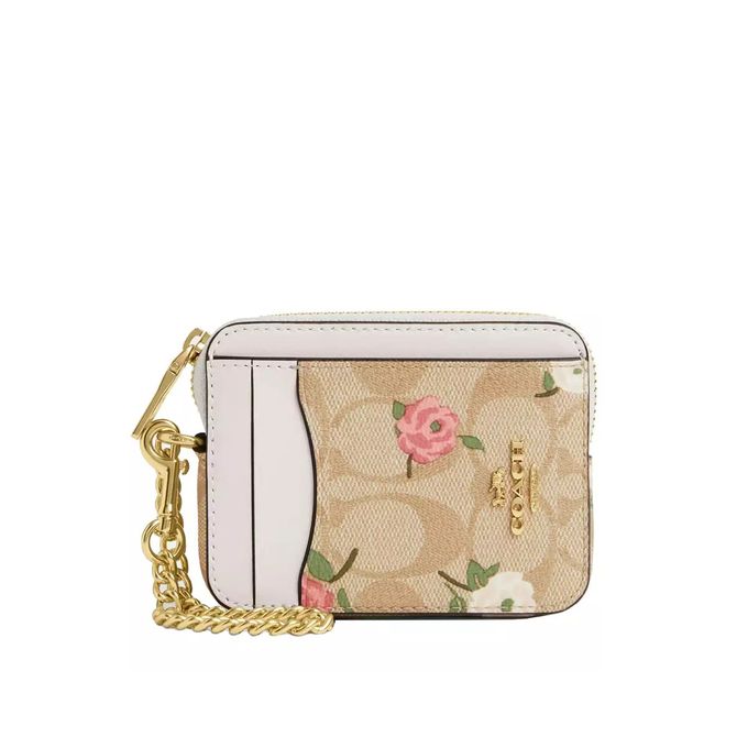 掛鍊拉鍊卡夾零錢包 (花卉)