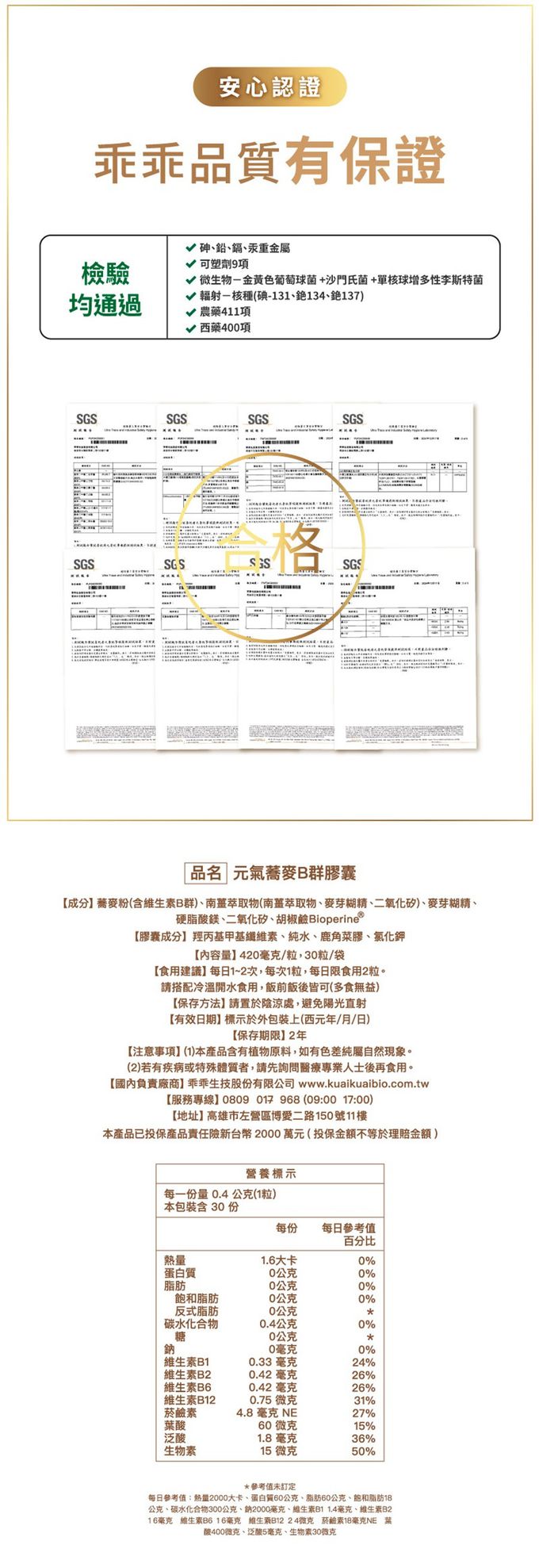 品名:元氣蕎麥B群膠囊 (30粒/袋)