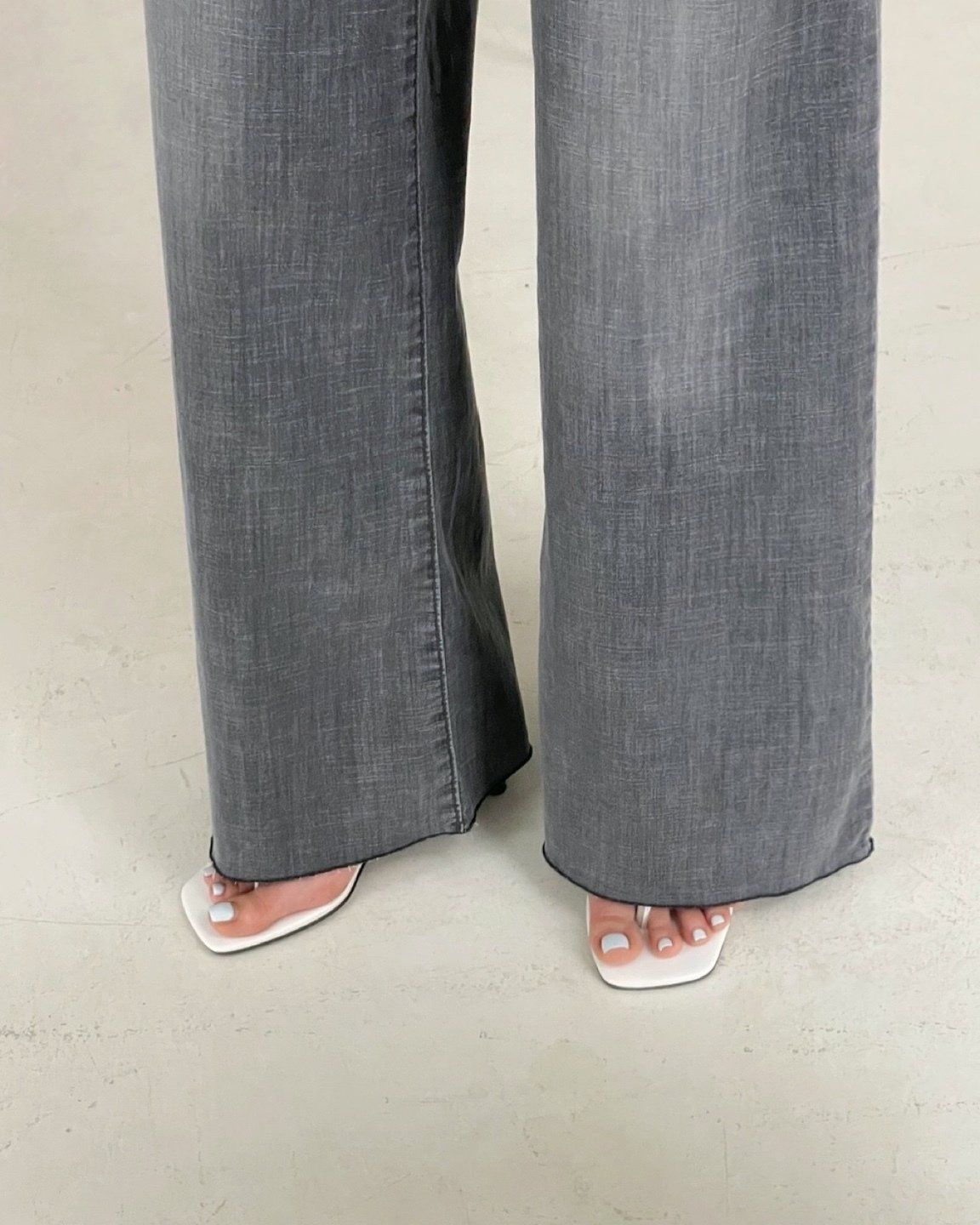 使用鹽水刷色工藝(Salt Washing)展現獨特且細緻的色澤。這種特殊技法能讓布料呈現自然不均勻的復古仿舊感,是一種高階水洗工藝!