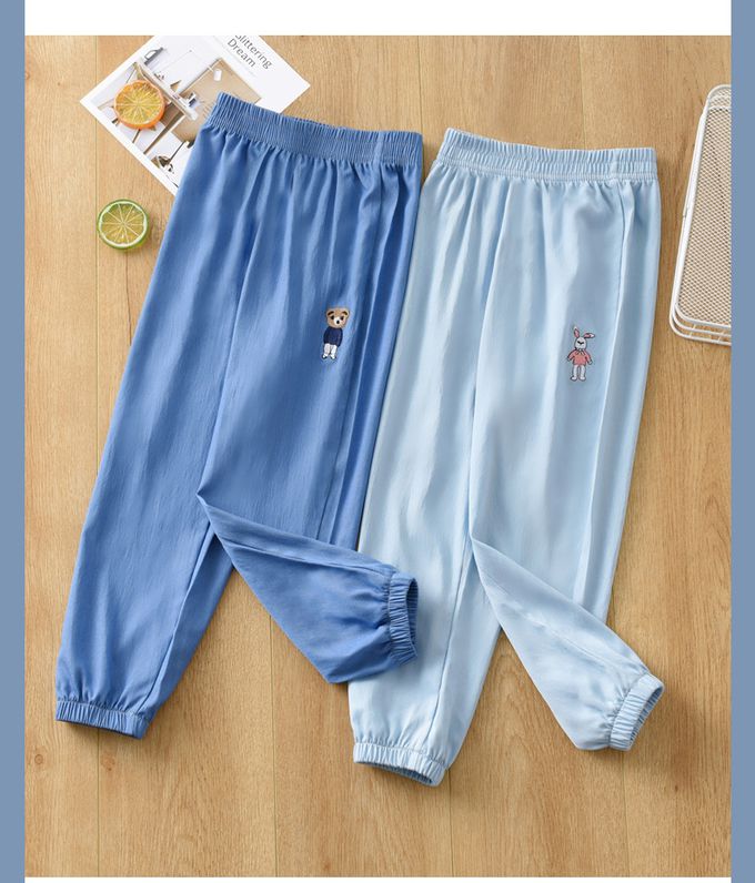 NC - 冰絲牛仔涼感防蚊褲-刺繡小熊-淺藍
