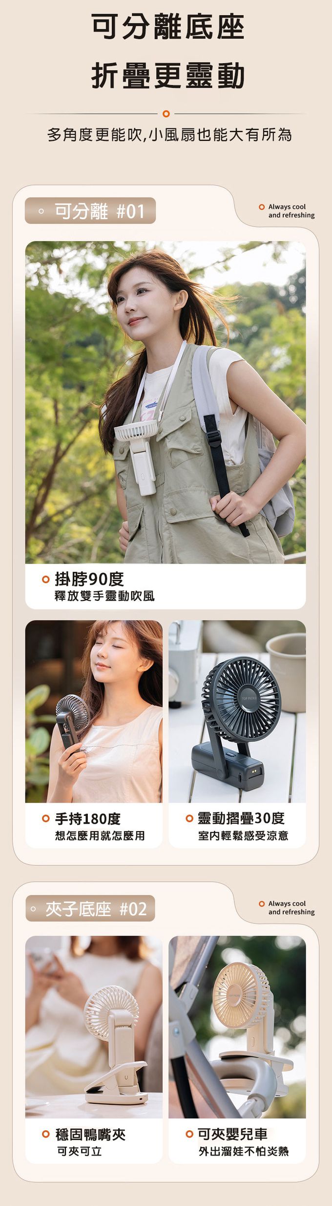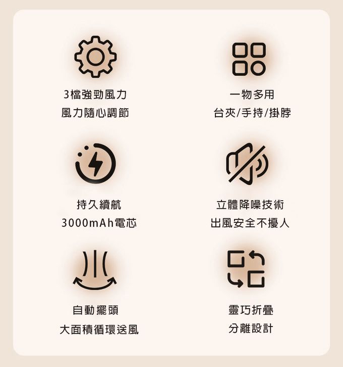 玩轉擺頭多功涼風扇-奶茶色