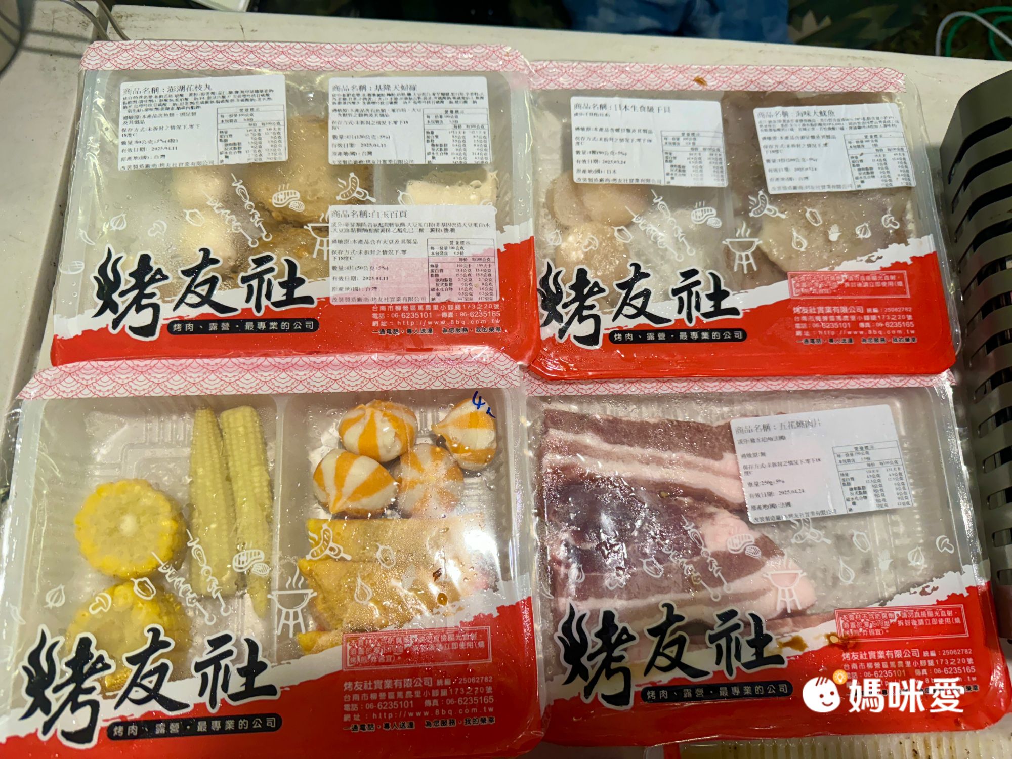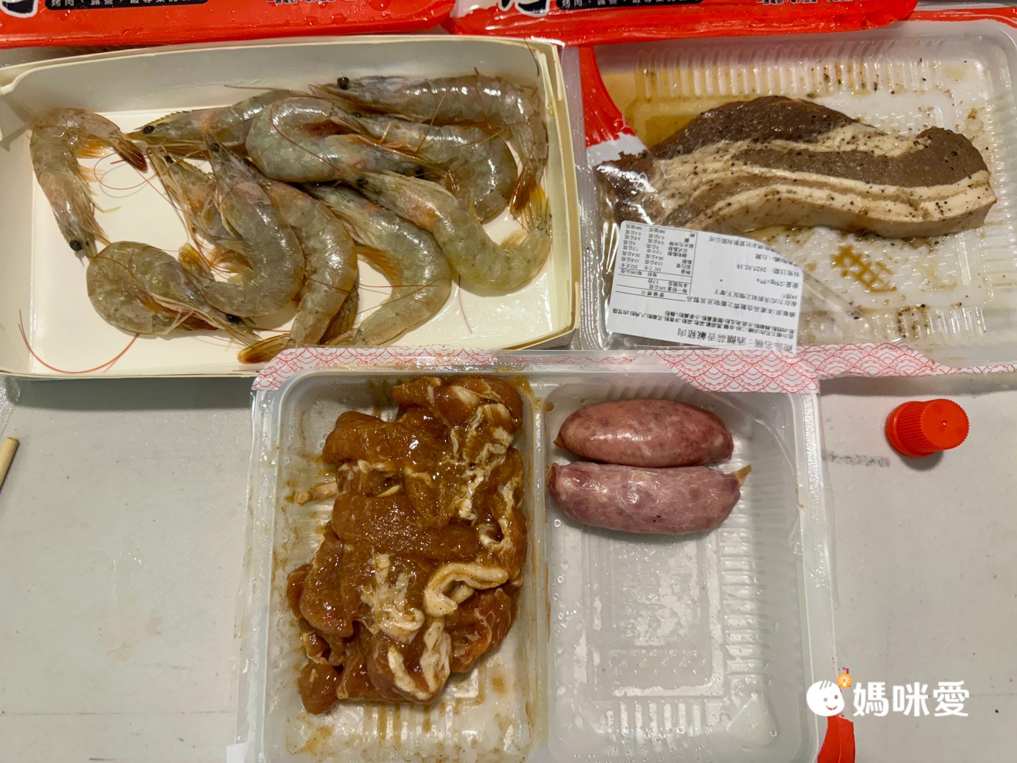 我們的是四人份食材,以我們來說份量超多,香腸是4條喔!孩子們等不及先烤來吃了😄