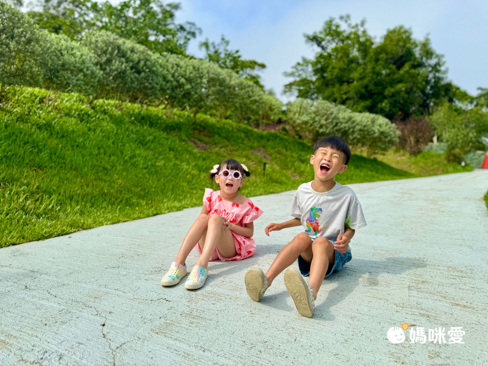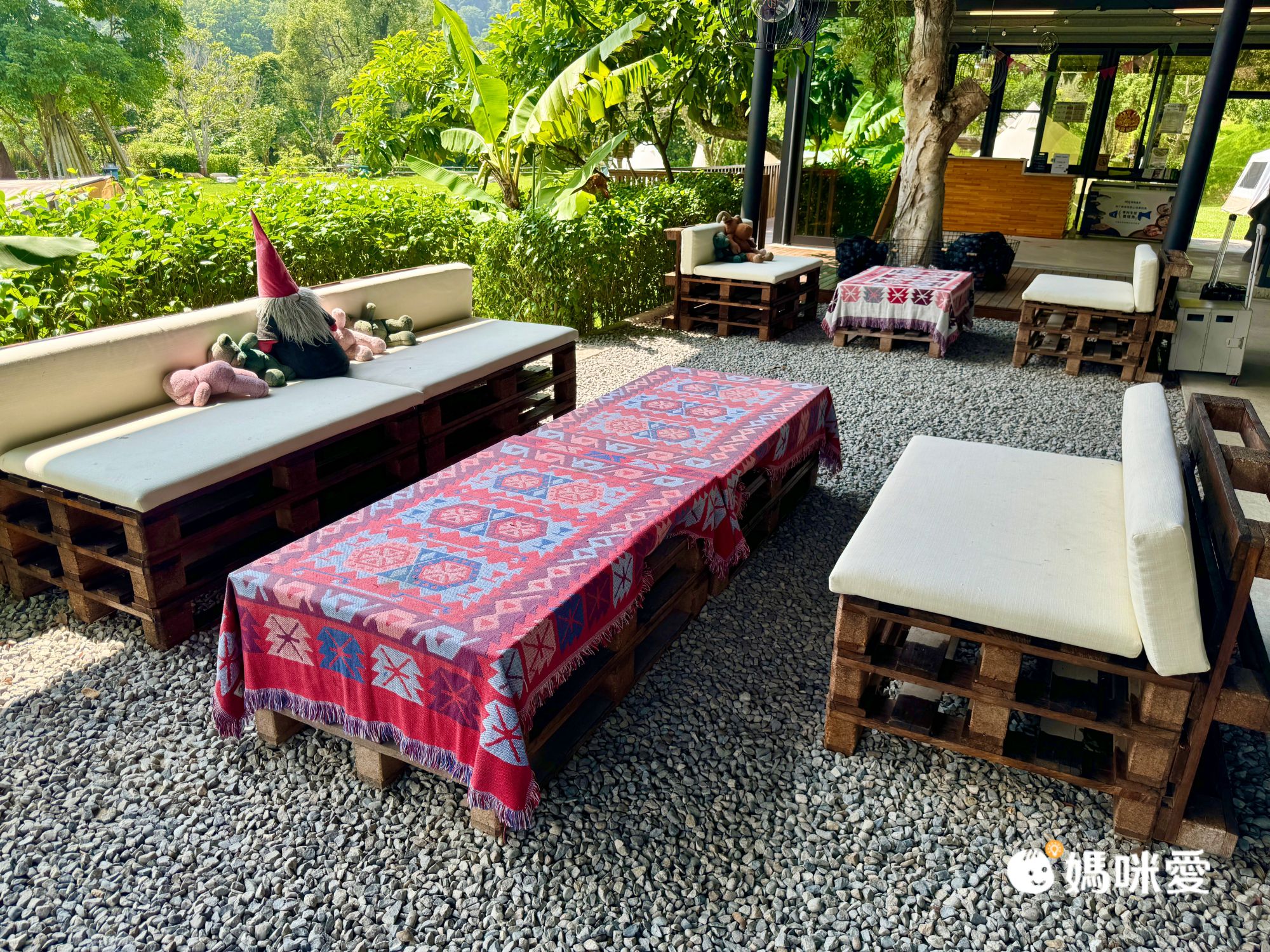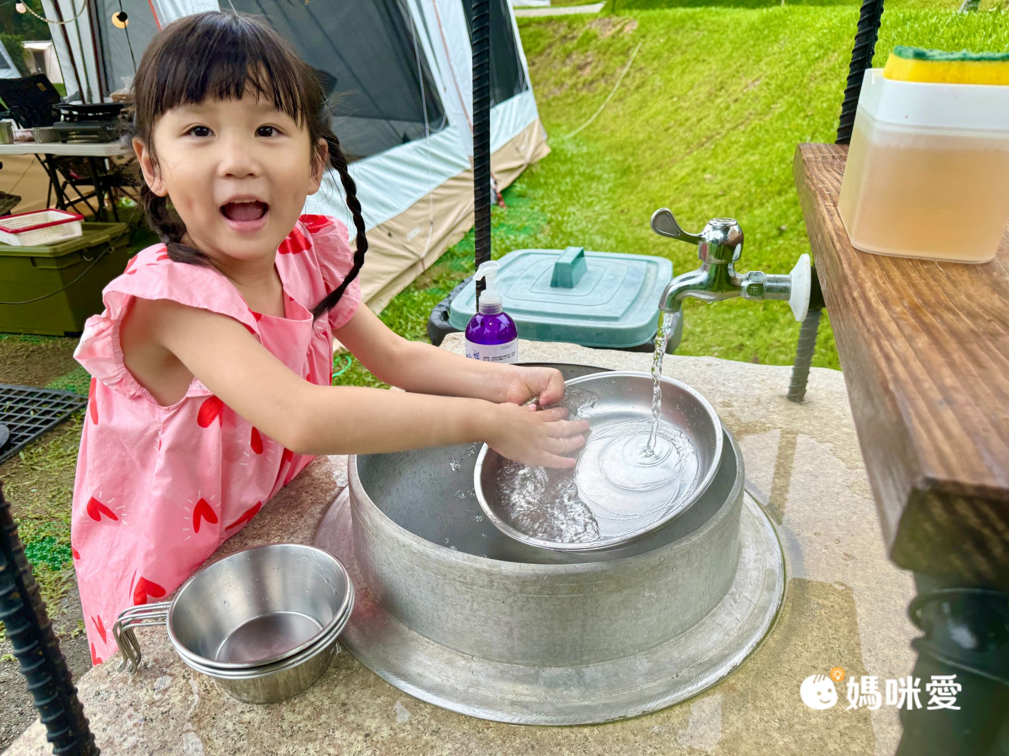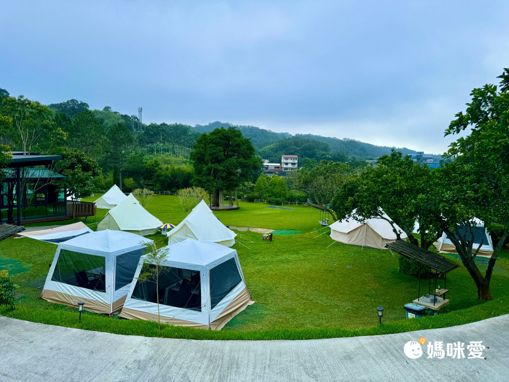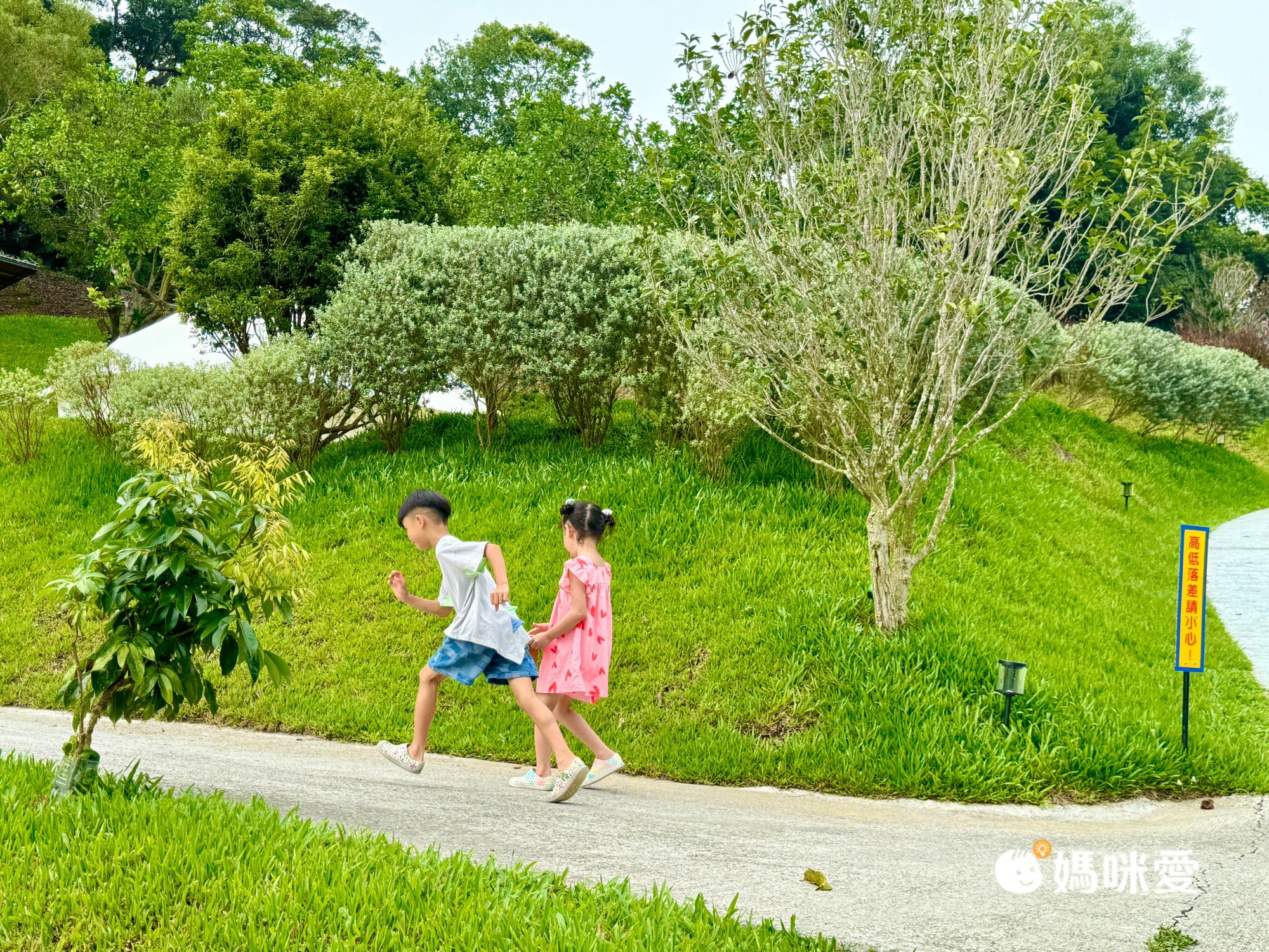 除了停車場是石頭地之外,整個營區都是草地及水泥地,可以很放心地讓孩子跑跳!