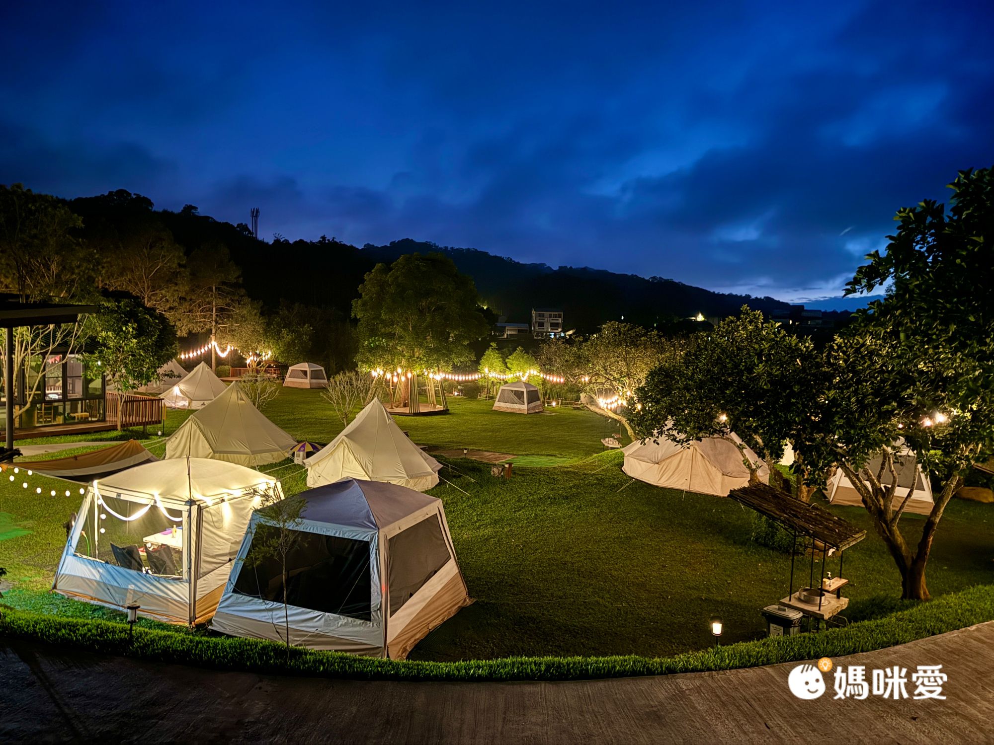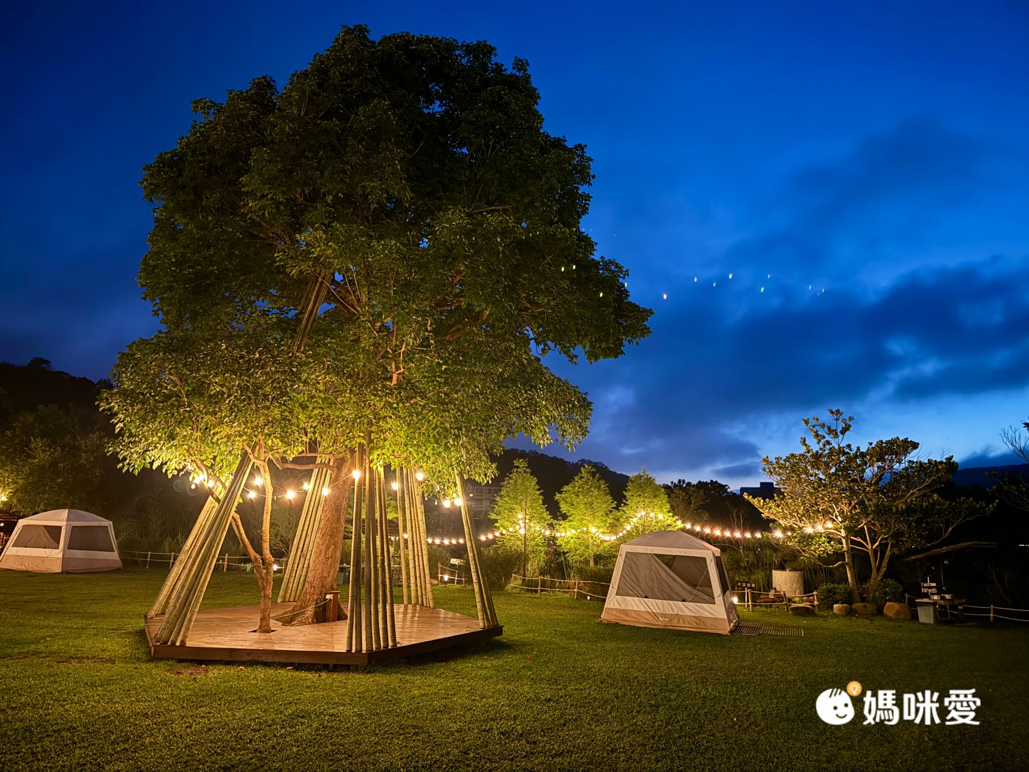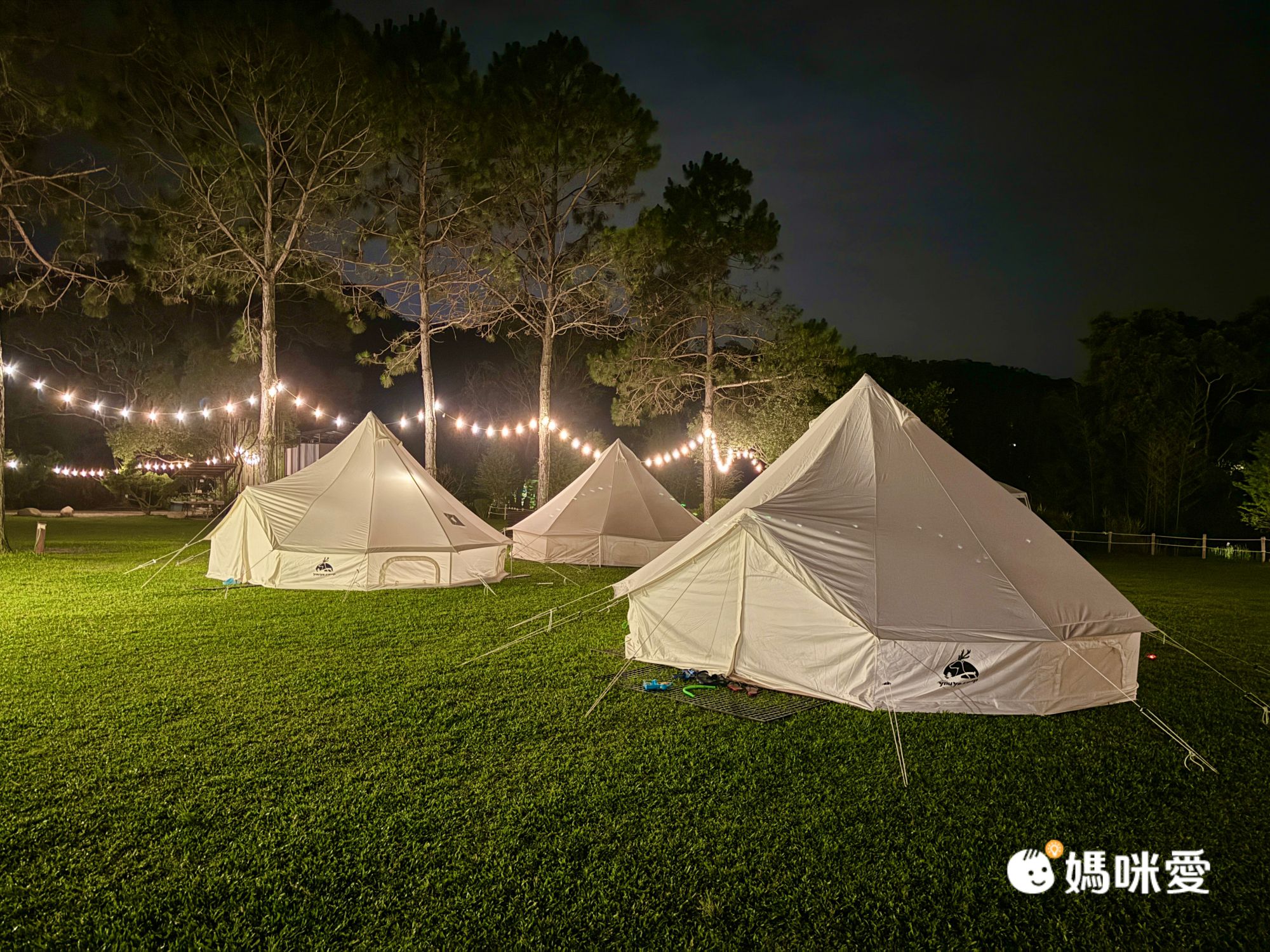 營區真是越夜越美麗,草地上的帳篷加上裝飾的球燈、燈條,很有氣氛!