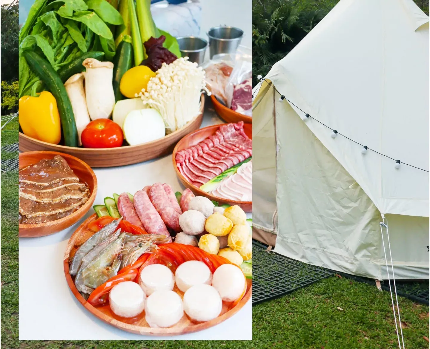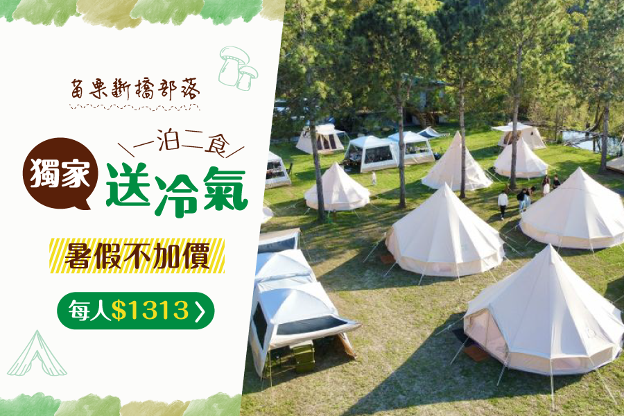 註:本專案為「限平日入住四大一泊二食無裝備露營體驗」入住帳型為清新鐘型帳,專案獨家含冷氣(現場加價需$600)。一泊二食包含個人套餐式早餐、自煮豪華火烤兩吃四人份。(餐點內容請依現場與官網為主)