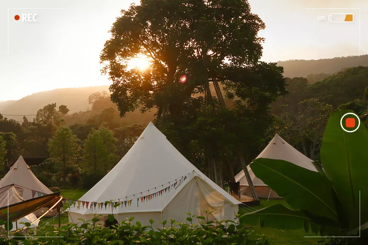 每個角度都好美,飯後跟孩子們一起在營區散步,再到客廳帳內吃零食、玩樂,美好的親子時光!