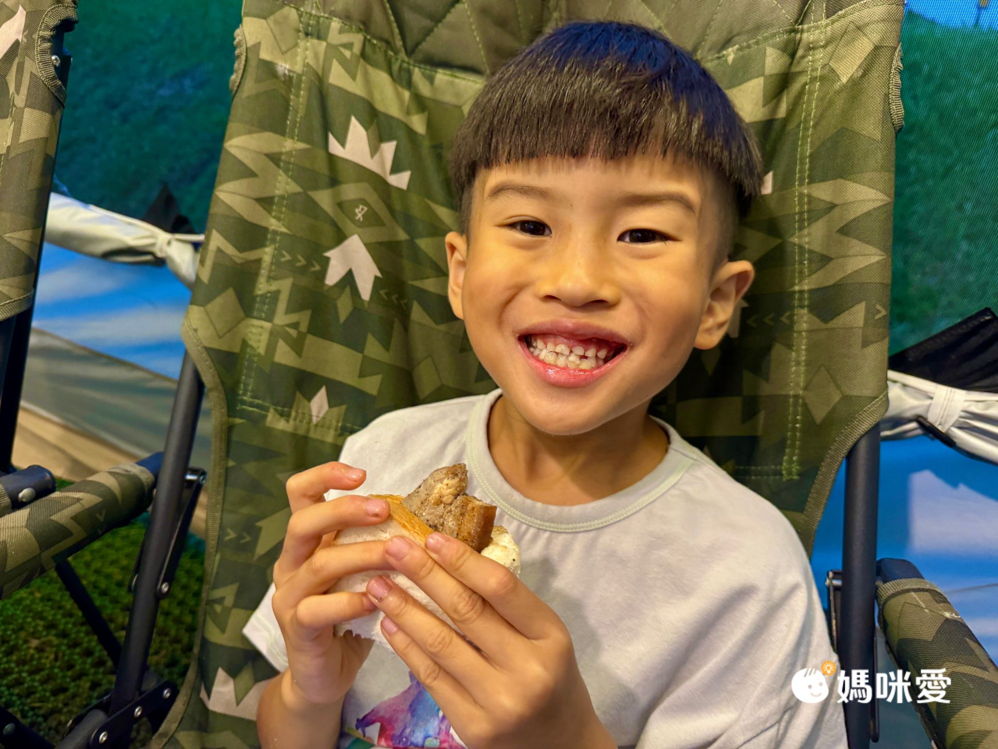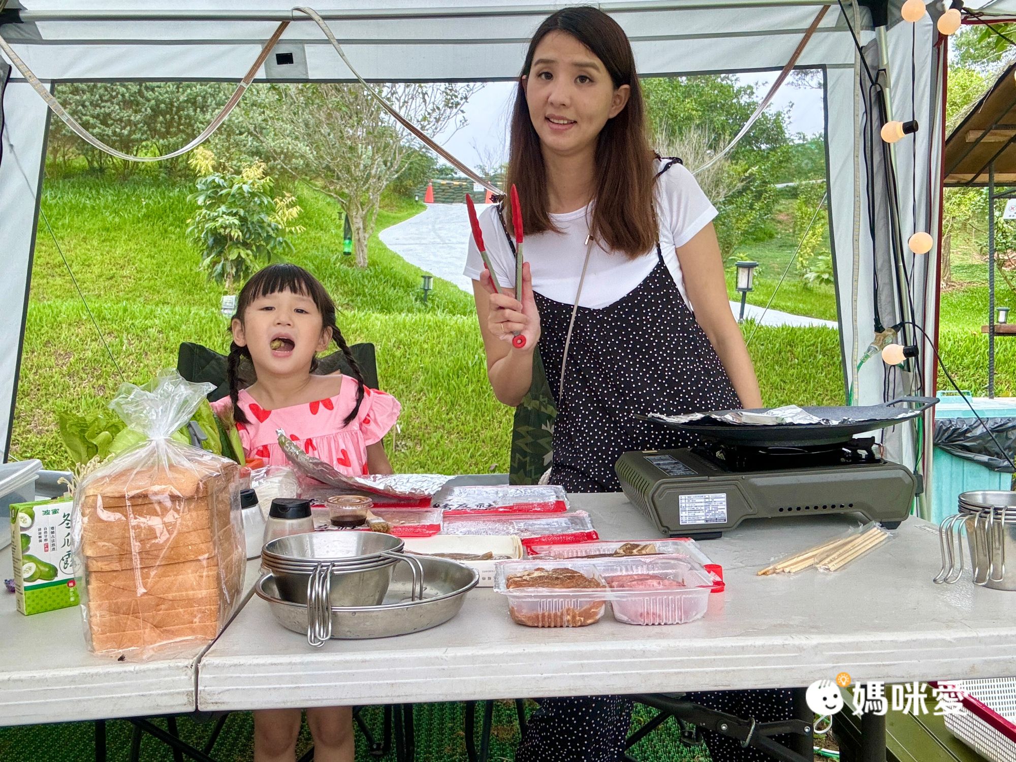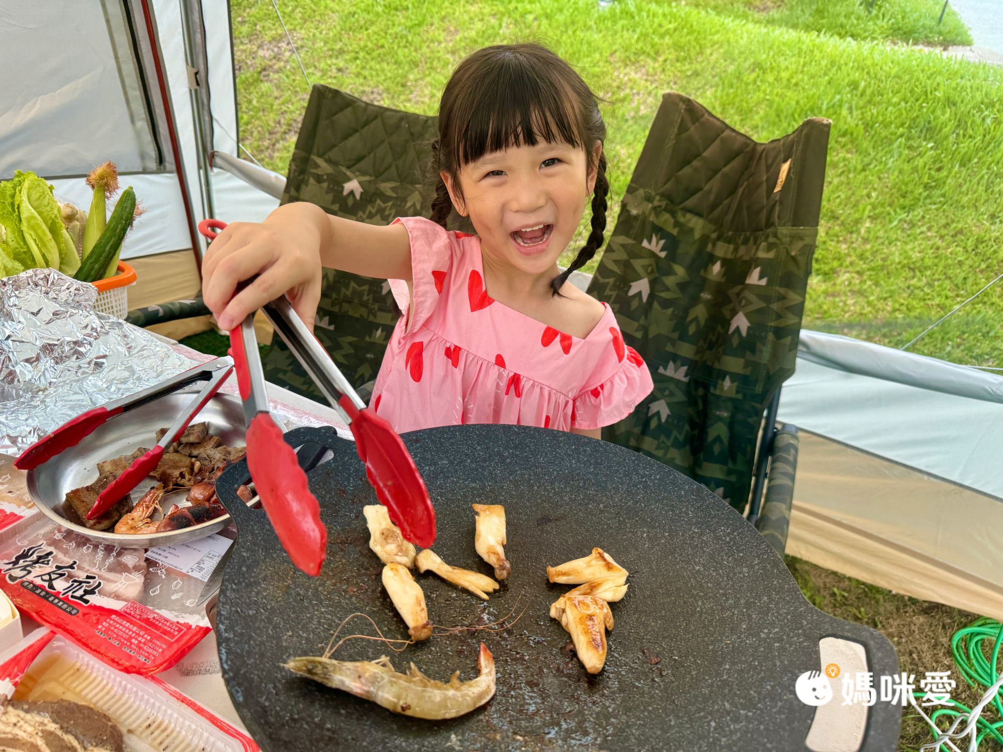 晚餐是豪華火烤晚餐,17:00工作人員就會依序送食材給各個帳篷,紅豆這次完全是媽媽的小幫手,Willson就負責盡情的吃XD