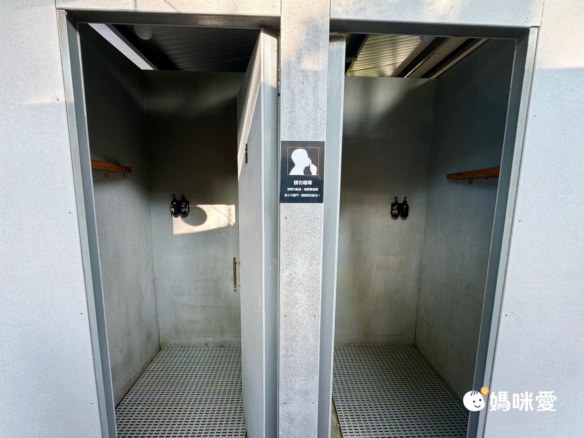 前半部是廁所、後半是淋浴間,男左女右區分。