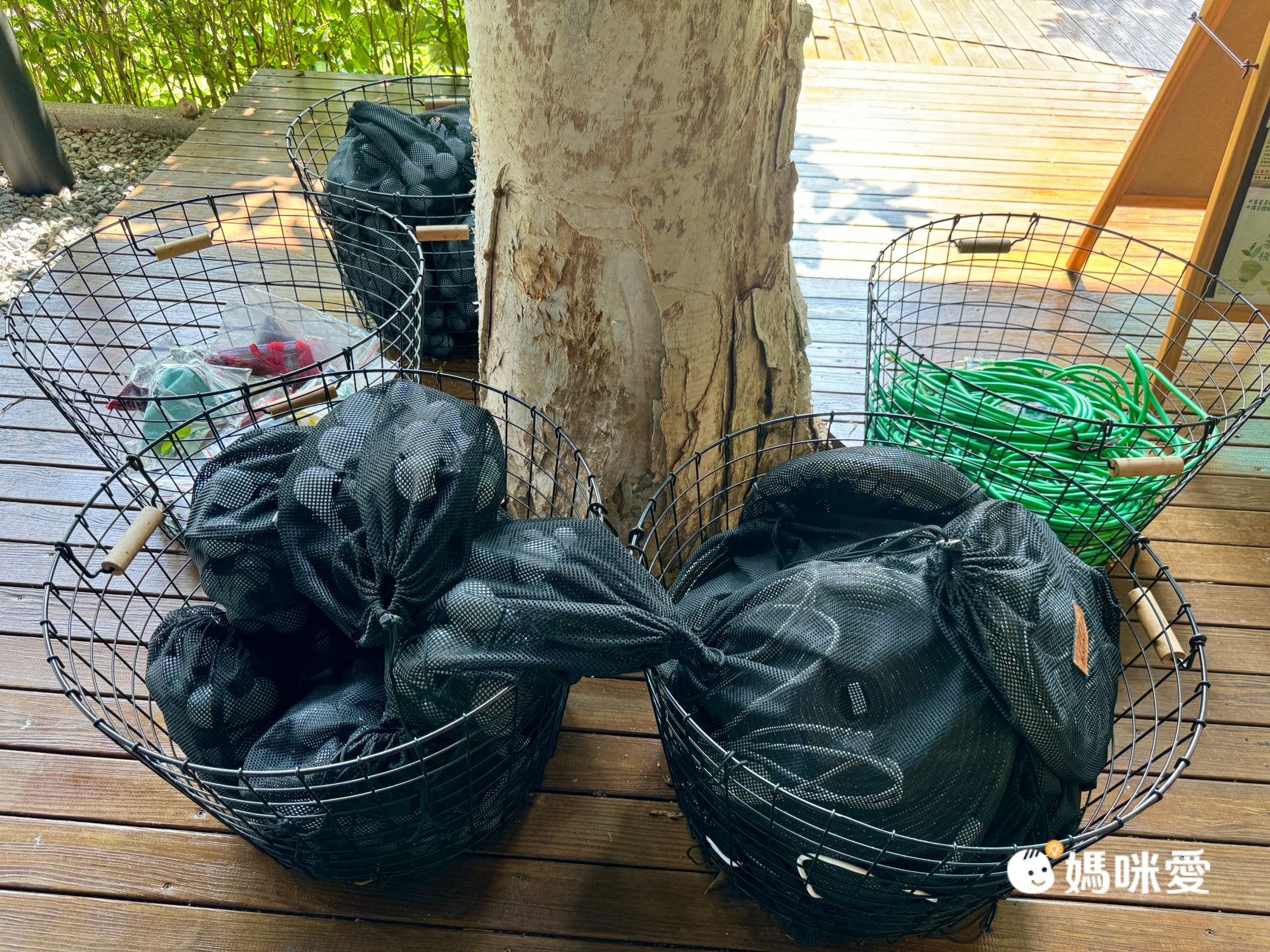 營本部前樹下的這幾籃,是提供露友可以自行佈置帳篷的器材。延長線、燈條、網美球燈及三角掛旗
