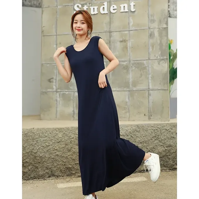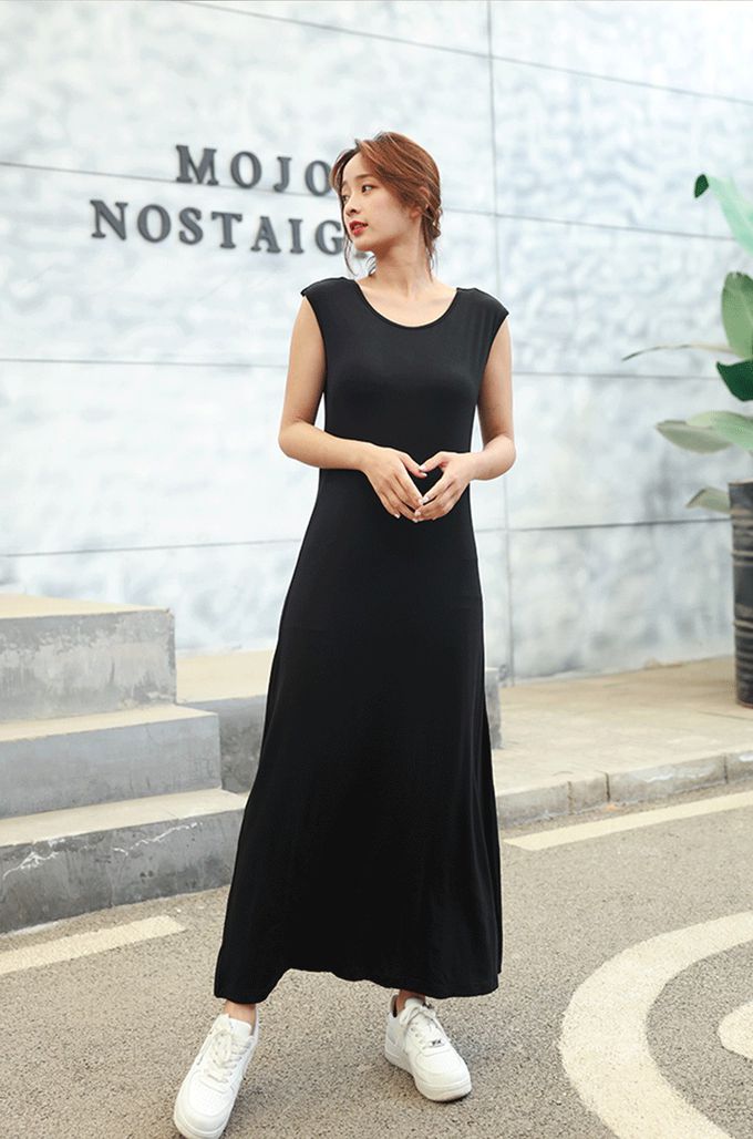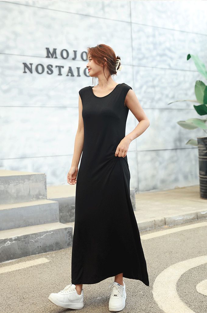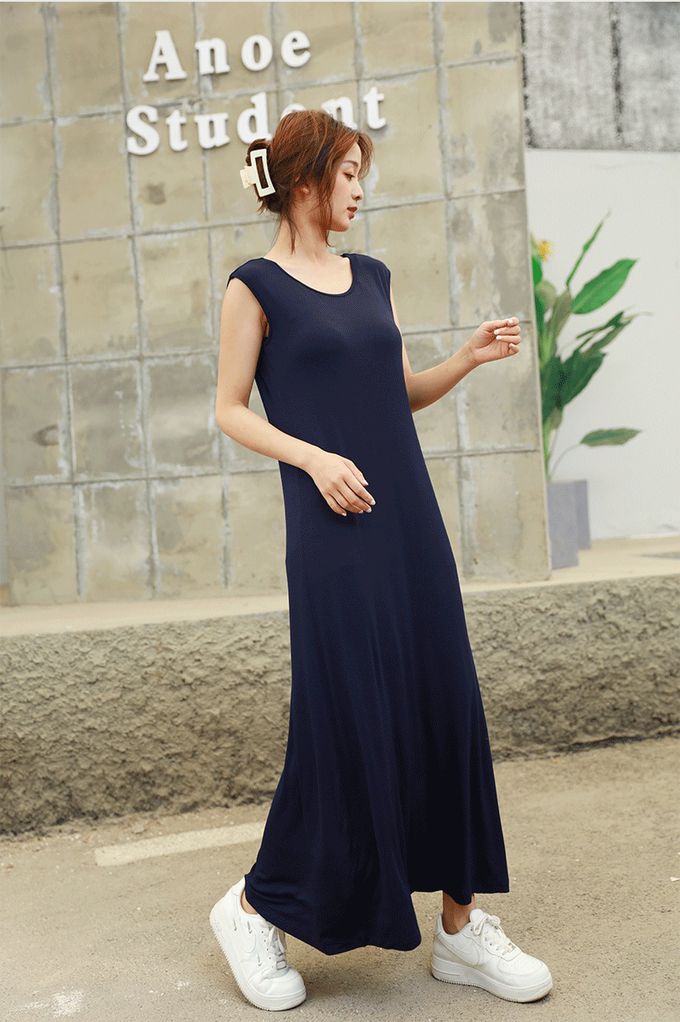 品名:涼感莫代爾無袖Bra長洋裝