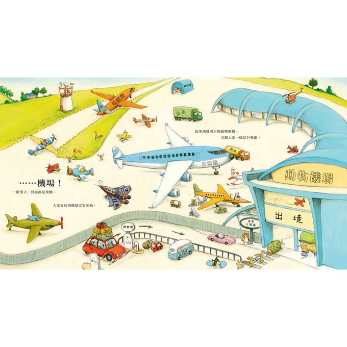 從打包行李開始,你就要好好盤算行李箱裡需要或可以帶多少東西。抵達機場附近,你會看到很不一樣的景觀,除了各式各樣的飛機讓人張大眼睛,還有各種不同名稱的區域,而你得注意看標示才會知道該往哪裡去。進到機場裡,首先得辦理報到手續、託運行李,當然,別把自己也託運進去!為什麼需要做安全檢查呢?你得小心別帶著違禁品。接著,進入候機大廳,琳瑯滿目的櫃位和免稅商品映入眼簾,這時候可以趁機買禮物送給自己和遠方的親人朋友;再來,透過窗戶玻璃,終於可以近距離觀看跑道上各種飛機的起降,於是一顆心也跟著撲通撲通地想要起飛了。等候飛機起飛的時間也許有點久,但你得注意時間、留心聽廣播,錯過登機時間就糟糕了!上飛機前,看看機場地勤人員的工作情形,也許等你長大以後,也會想當飛航管制員喔!