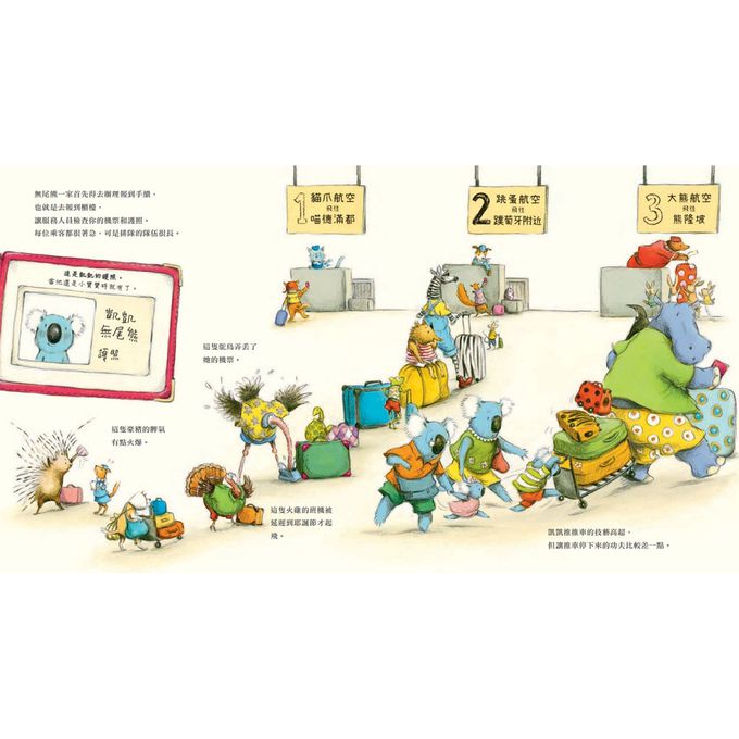 這是無尾熊一家的度假之旅,他們即將前往機場搭飛機。從報到、出境,到駕駛艙和行李轉盤,有好多事物可以探索呢!不過,在長長的航程裡,孩子怎麼樣才不會無聊呢?