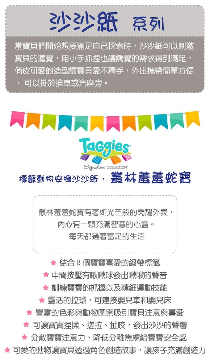叢林羞羞蛇寶有著如光芒般的閃耀外表,內心有一顆充滿智慧的心靈。每天都過著富足的生活●靈活的拉環,可連接嬰兒車和嬰兒床●有趣可愛的角色圖案,吸引寶寶的好奇與喜愛●結合8個寶寶喜愛的緞帶標籤,提供觸感的刺激●搓揉會有喀擦喀擦的觸感跟聲音,按壓啾啾球會發出啾啾的聲音。刺激寶寶的聽力和訓練小手肌肉