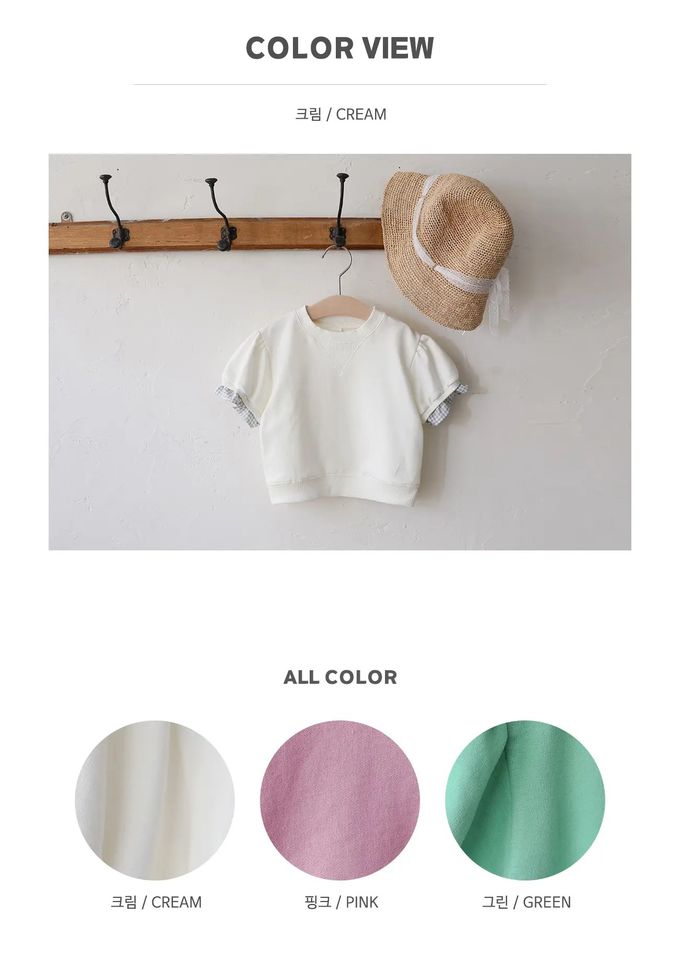 韓國 PuellaFLO - 簡約格紋點綴短袖大學T-白