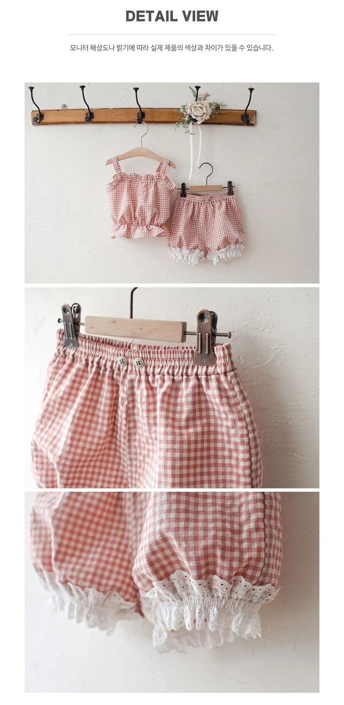 • 品名:鬆緊腰甜甜格紋蕾絲裝飾短褲