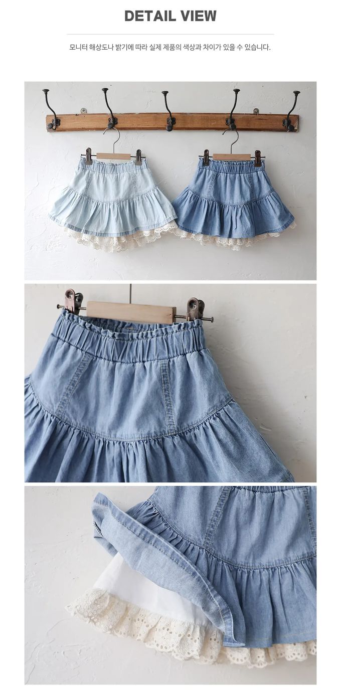 • 品名:鬆緊腰層次蕾絲丹寧褲裙