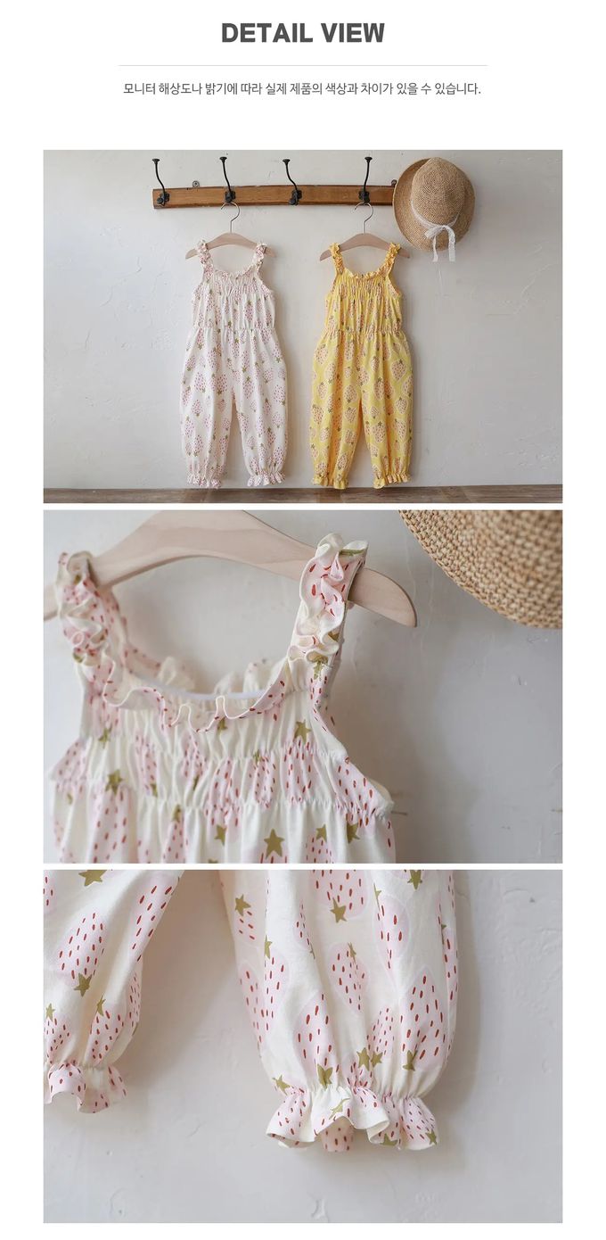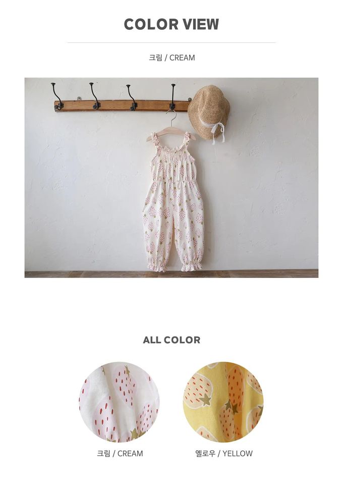 韓國 PuellaFLO - 酸甜草莓印抓褶細肩連身褲-白
