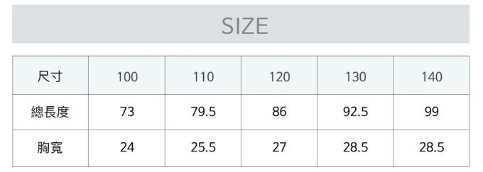 1. 尺寸表單位皆為公分(cm),實際尺寸會因布料彈性、水洗、測量起迄點等因素略有誤差。