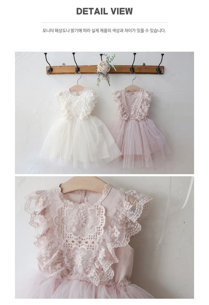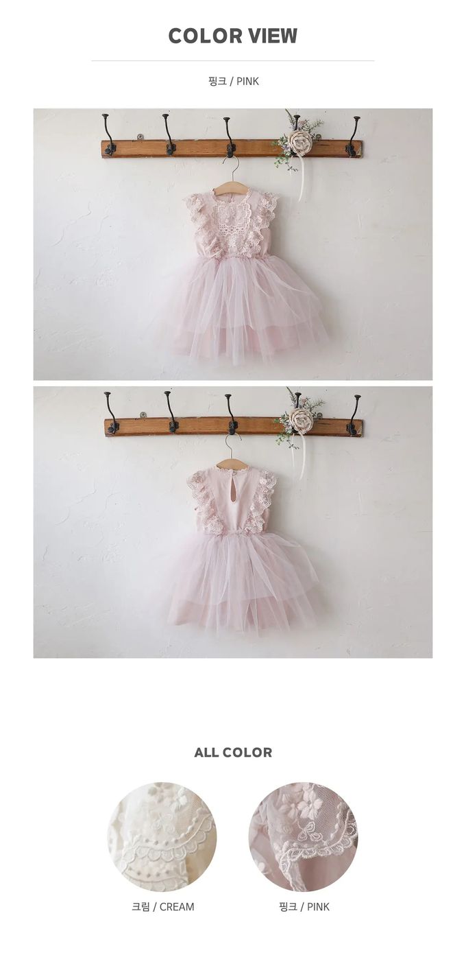 韓國 PuellaFLO - 夢幻花蕾絲蓬蓬公主洋裝-藕粉