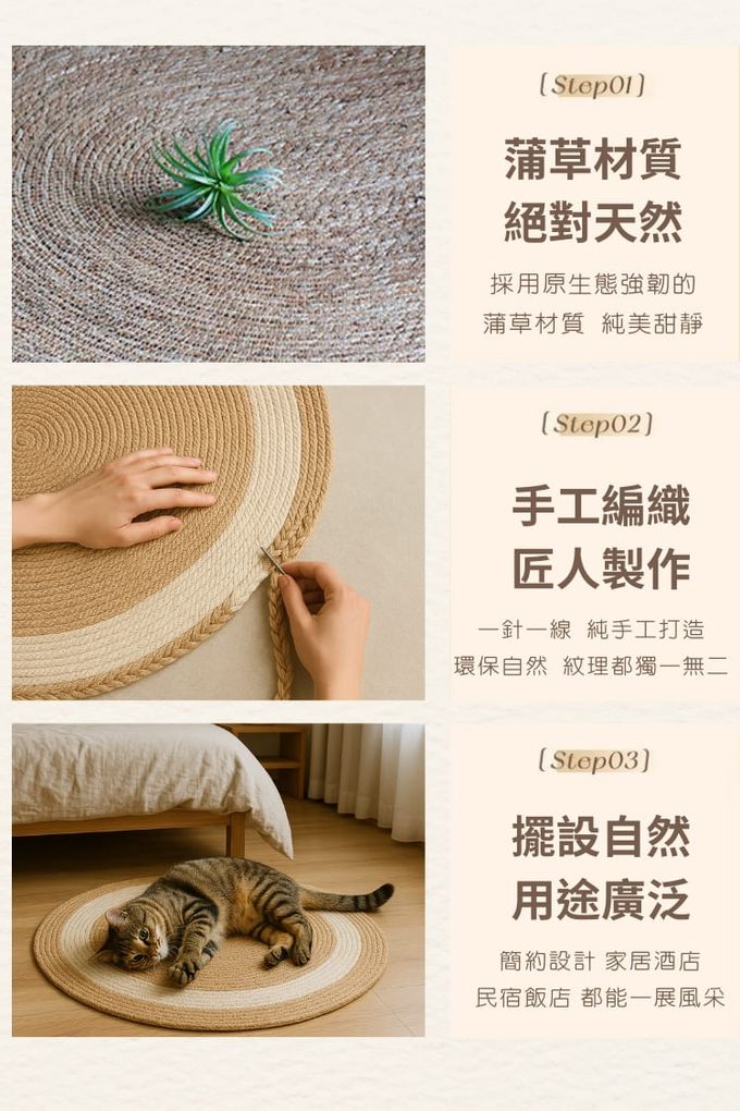 貓貓召喚墊-北歐天然蒲草墊-細柔棉麻