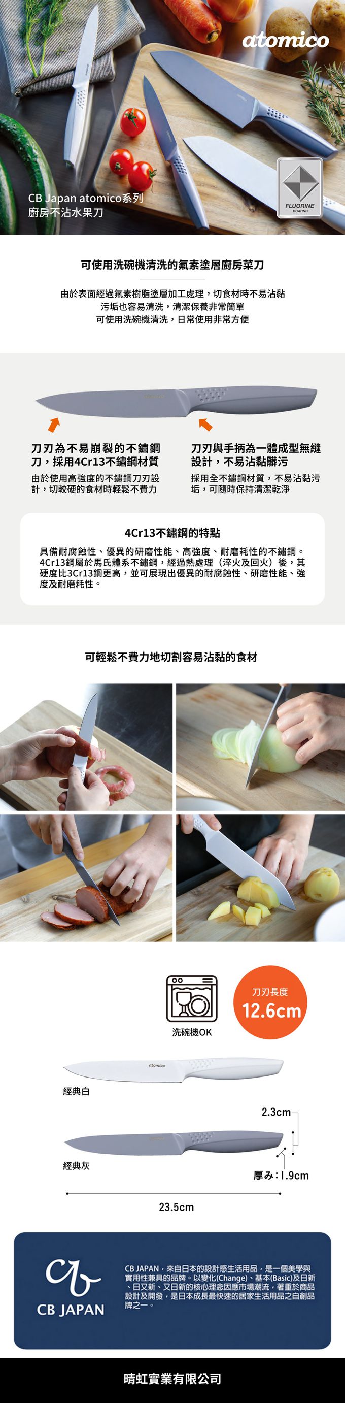 廚房不沾水果刀,表面經過氟素樹脂塗層加工處理,切食材時不易沾黏,刀刃與握柄為無接縫的一體成型設計,不容易沾黏污垢,衛生又乾淨。可使用洗碗機清洗,清潔保養輕鬆簡單,日常使用非常方便。