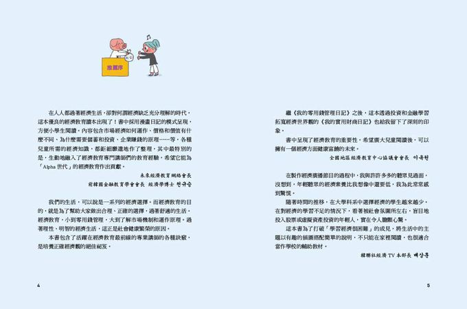 當你知道經濟教育很重要,但又不知道如何教孩子經濟學時,這是一本很棒的書。最重要的是它以漫畫的圖文形式呈現,因此閱讀起來較輕鬆。經濟學專業用語的解釋也十分簡單,讓經濟教育變得輕鬆易懂。——讀者kimeh