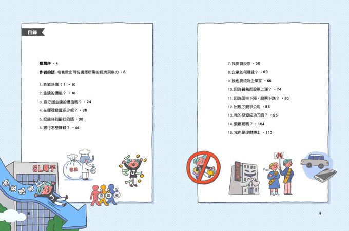 這本書為了打破「學習經濟很困難」的成見,將生活中的主題以有趣的插圖搭配簡單的說明,不只能在家裡閱讀,也很適合當作學校的輔助教材。