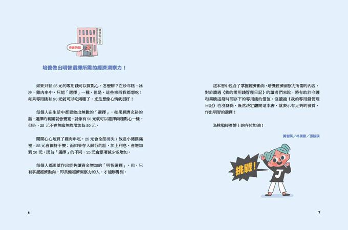 對於讀過《我的零用錢管理日記》的讀者們來說,將有助於守護和累積這段時間存下的零用錢的價值。沒讀過《我的零用錢管理日記》也沒關係,既然決定翻開這本書,就表示有足夠的資質,作出明智的選擇!