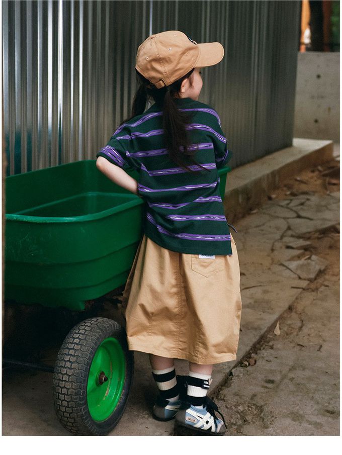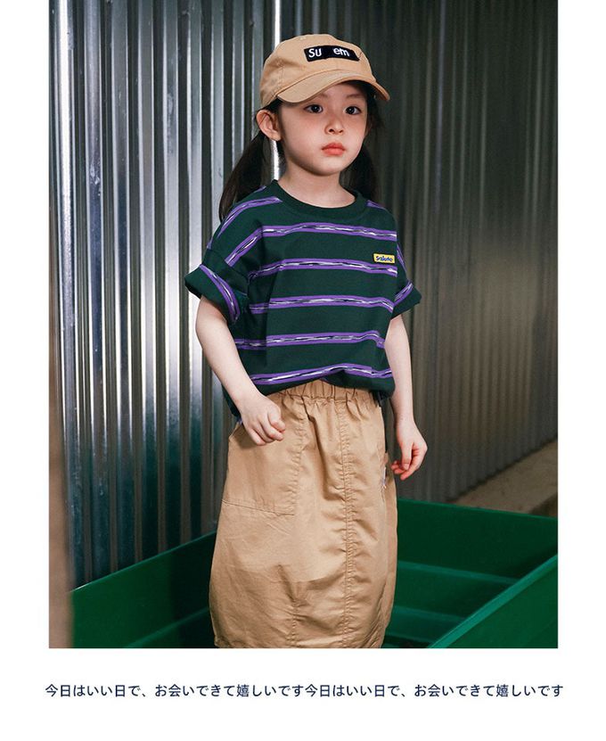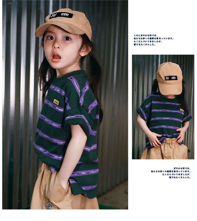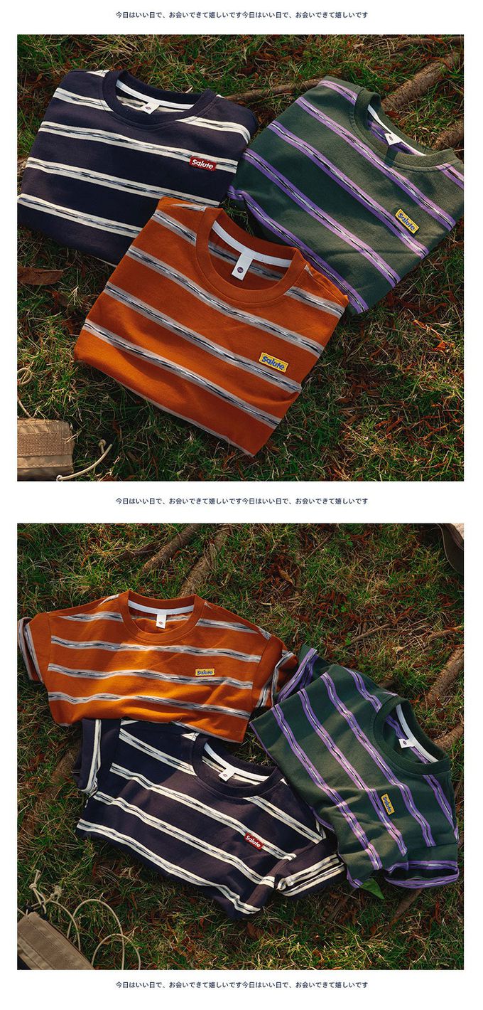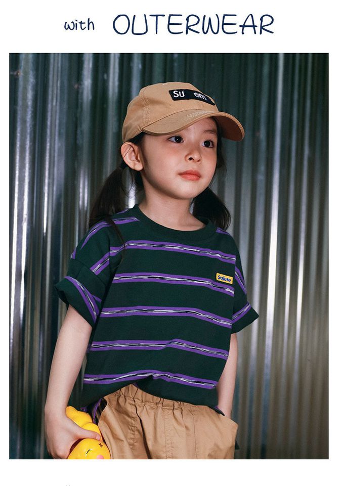純棉圓領短袖上衣-設計款條紋-深墨綠