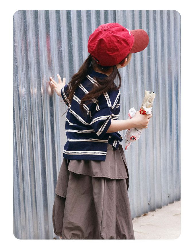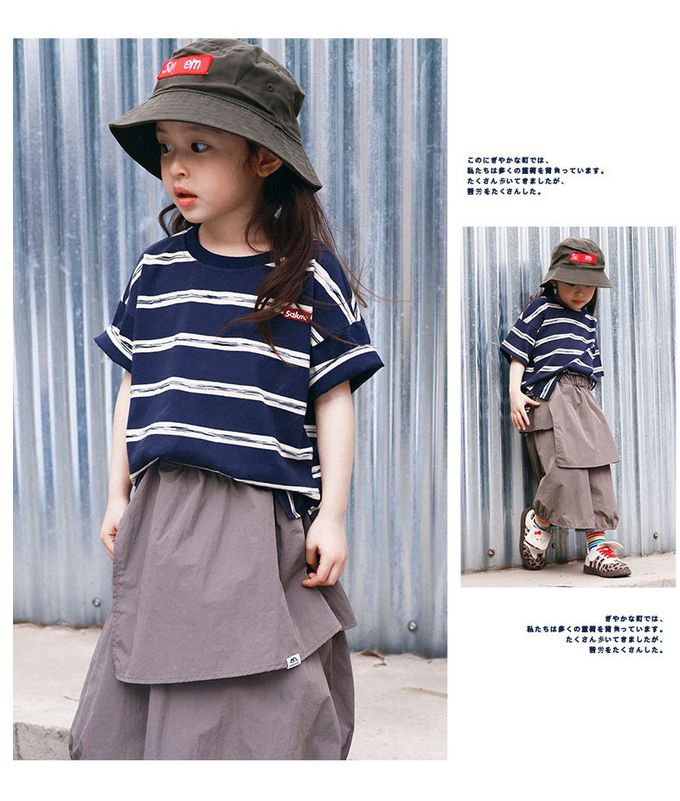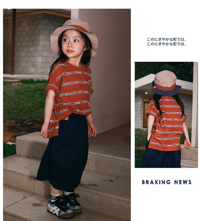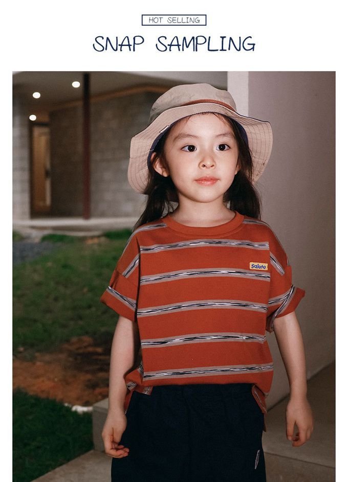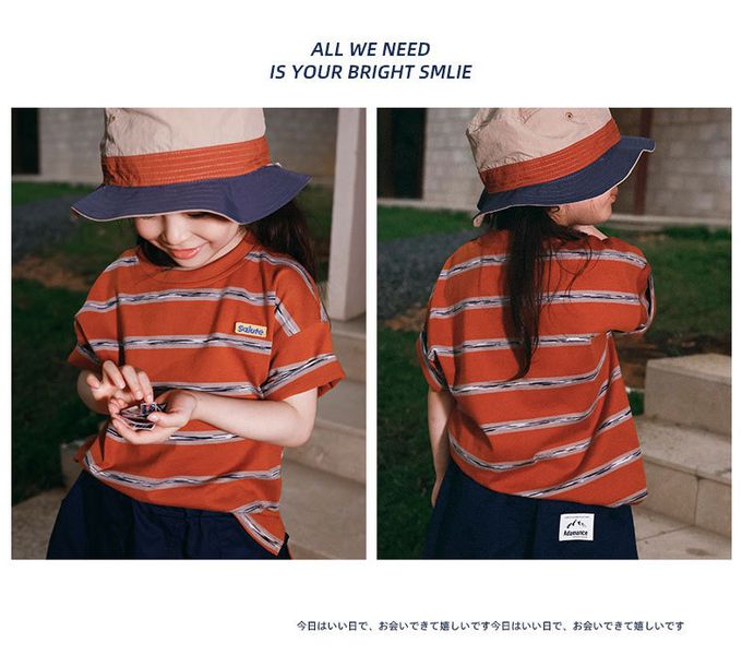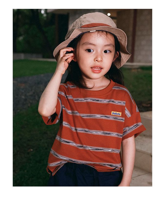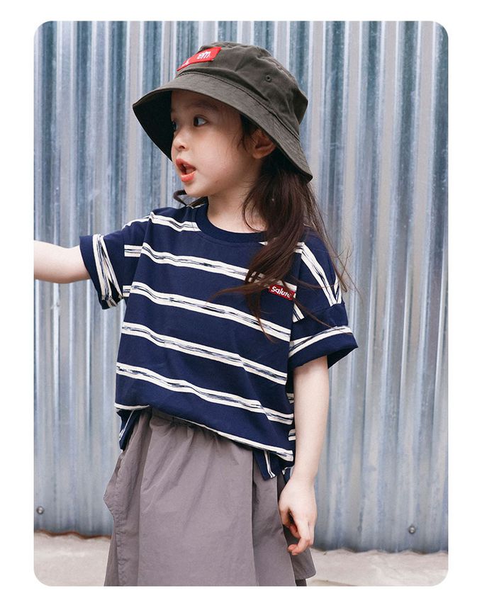 純棉圓領短袖上衣-設計款條紋-深墨綠