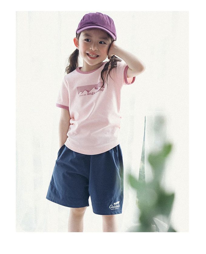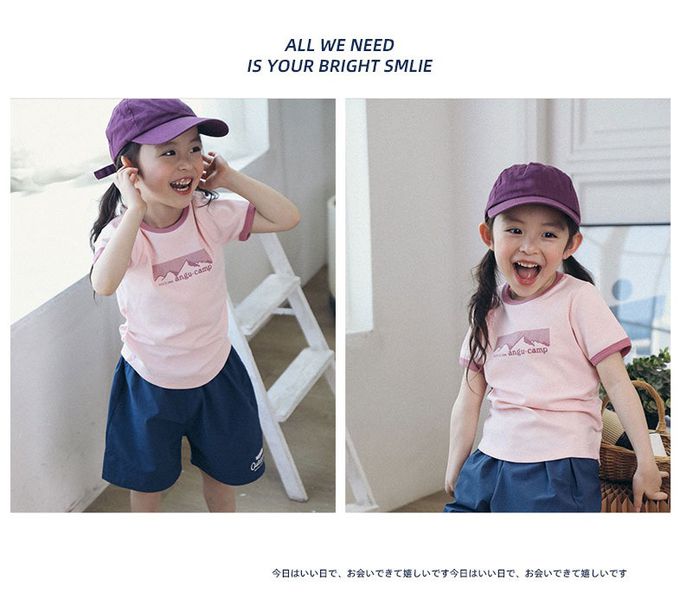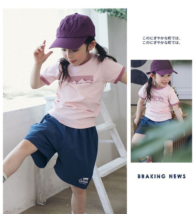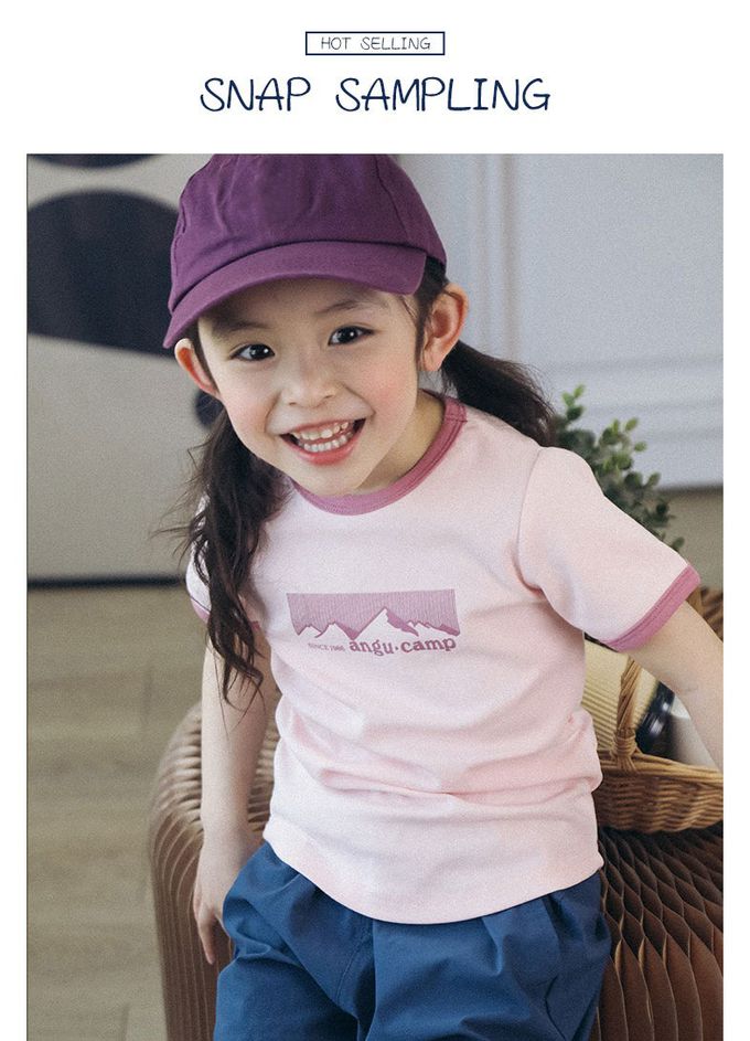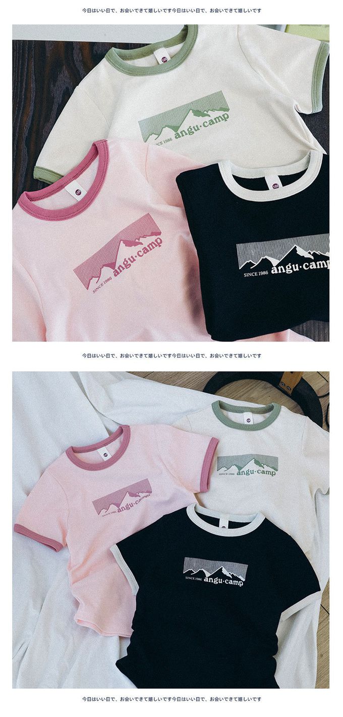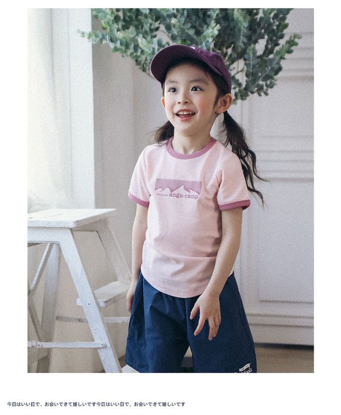 棉質圓領短袖上衣-撞色滾邊側抓皺-粉色