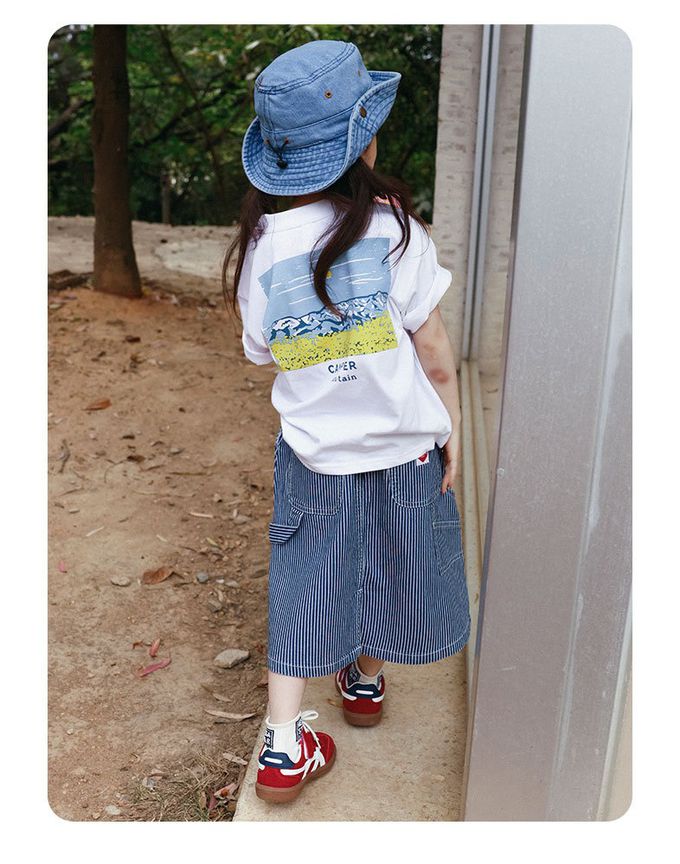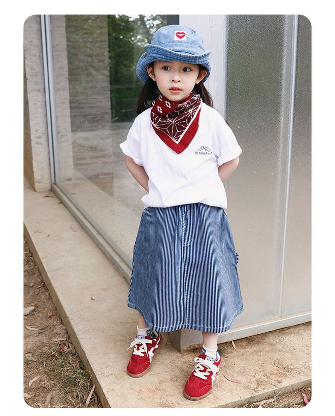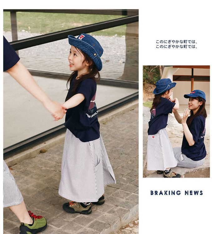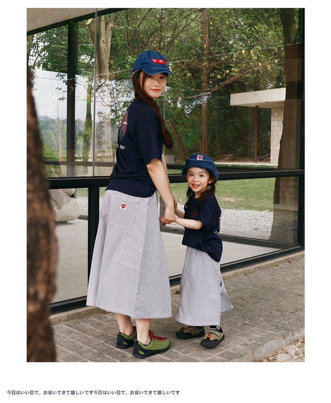 純棉舒適直條紋中長裙-親子款-米白